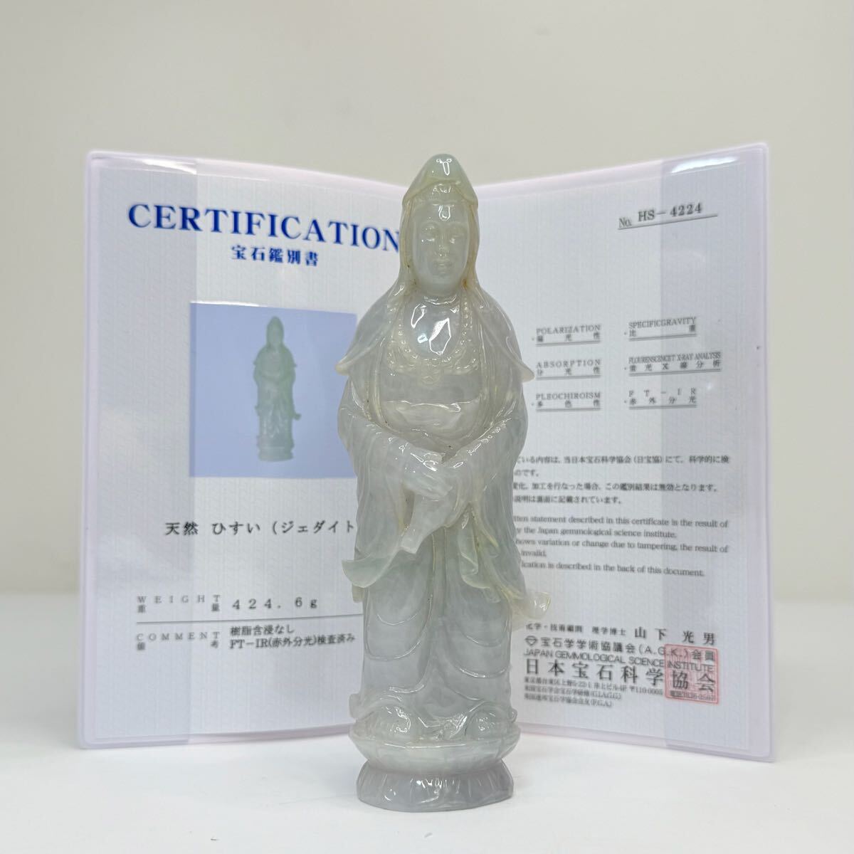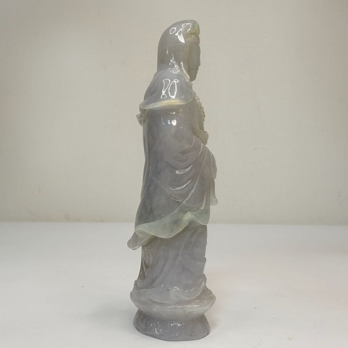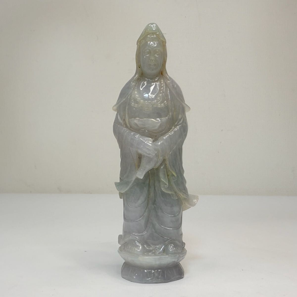 TR-中国古美術 時代物 仏像 観音像 翡翠 ヒスイ 彫刻 石彫 鑑別書付 仏教美術 唐物 中国古玩 骨董品 高さ15.4cm |