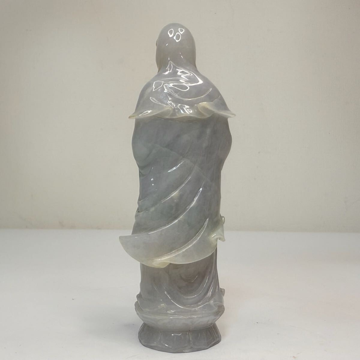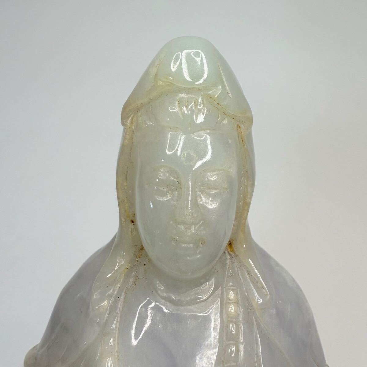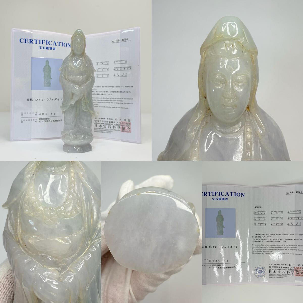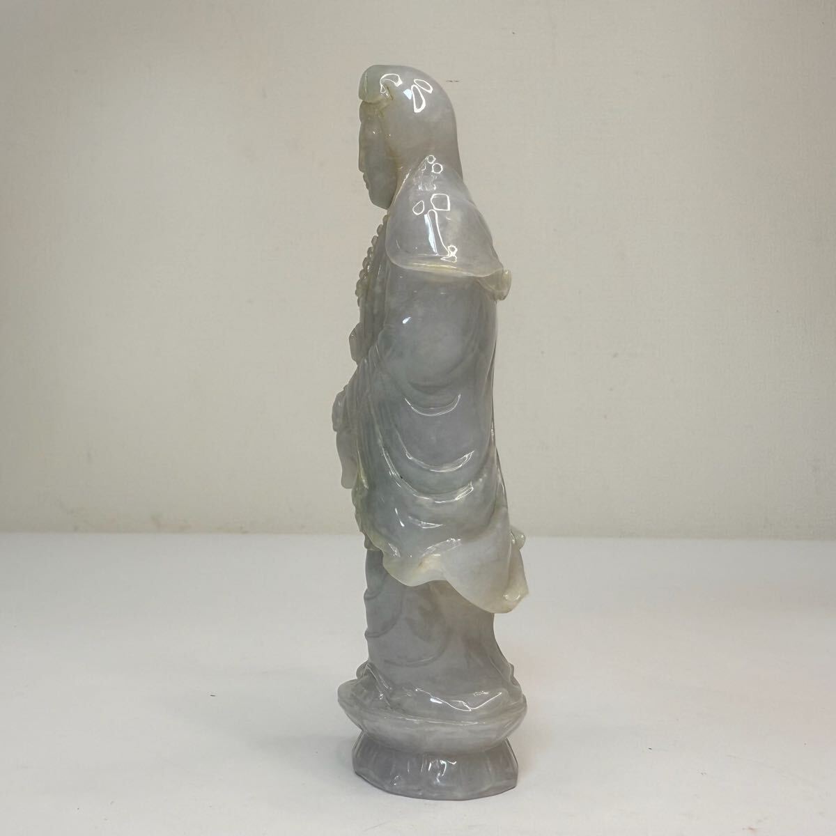 TR-中国古美術 時代物 仏像 観音像 翡翠 ヒスイ 彫刻 石彫 鑑別書付 仏教美術 唐物 中国古玩 骨董品 高さ15.4cm |