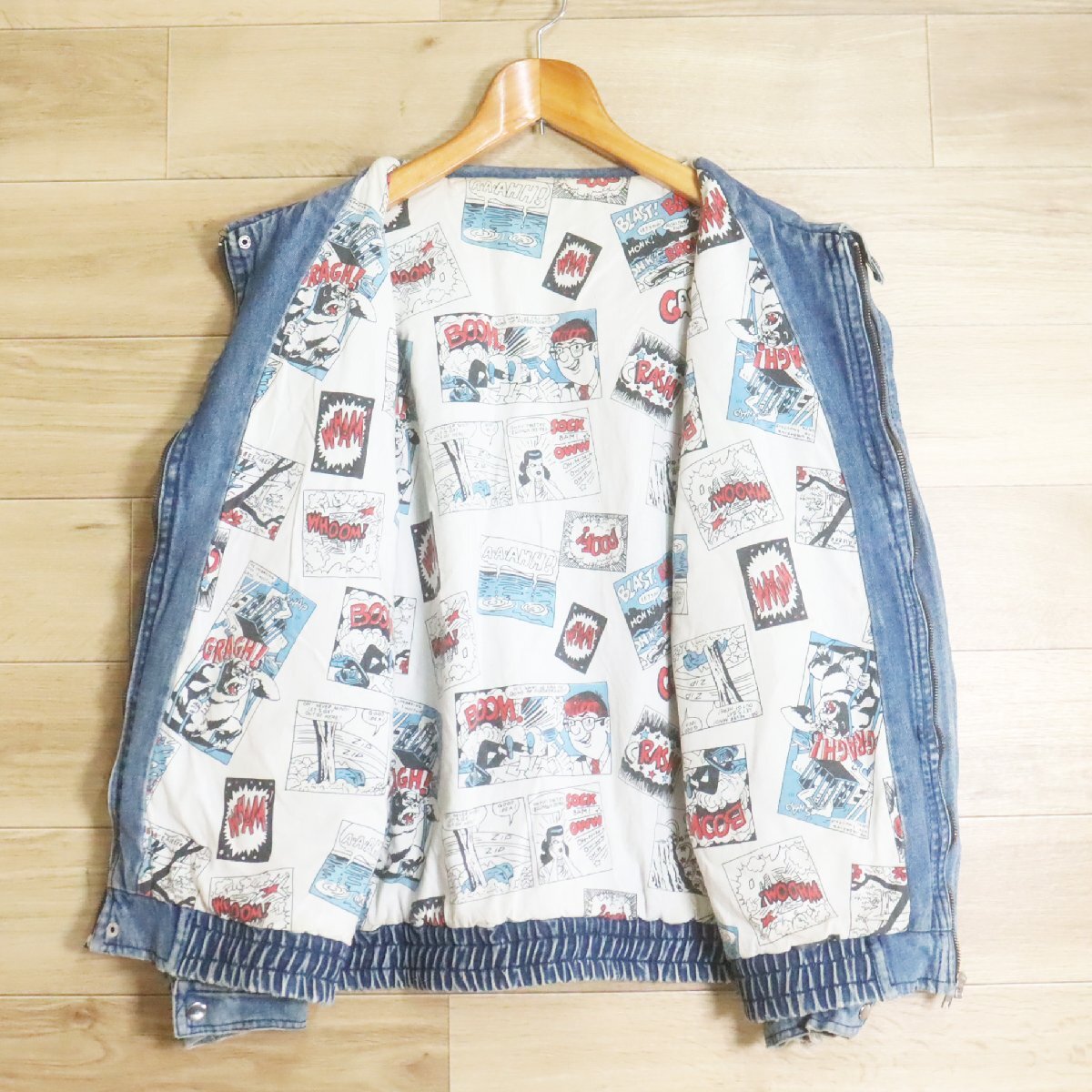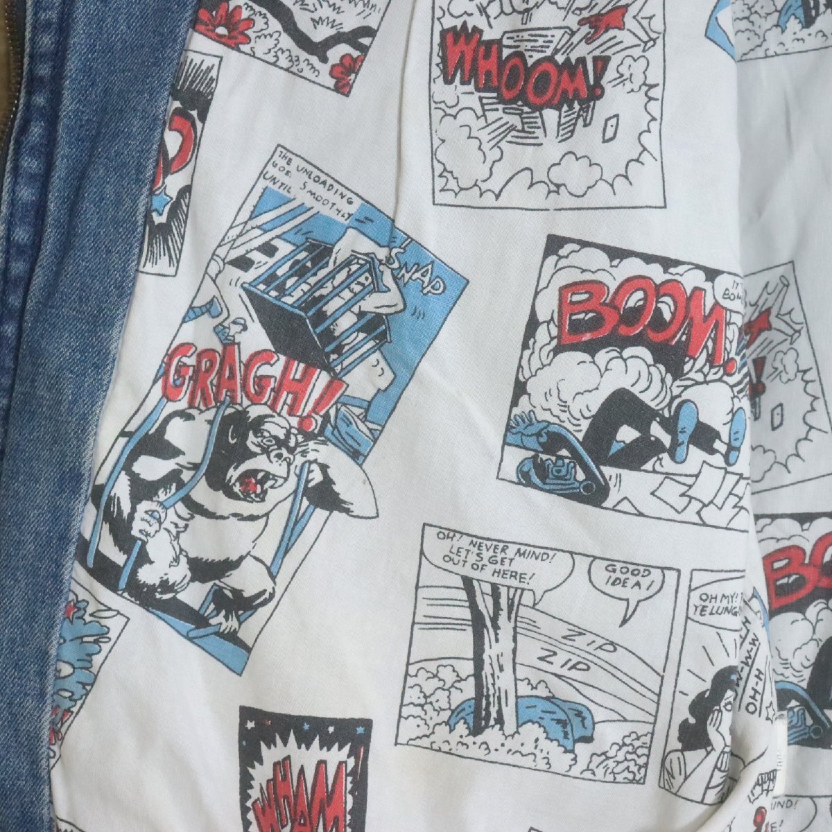 &1R/R8.5-2 アメリカ古着 デニムジャケット ジージャン Gジャン ジップアップ 裏アメコミ柄 ブルゾン ジャンパー メンズ