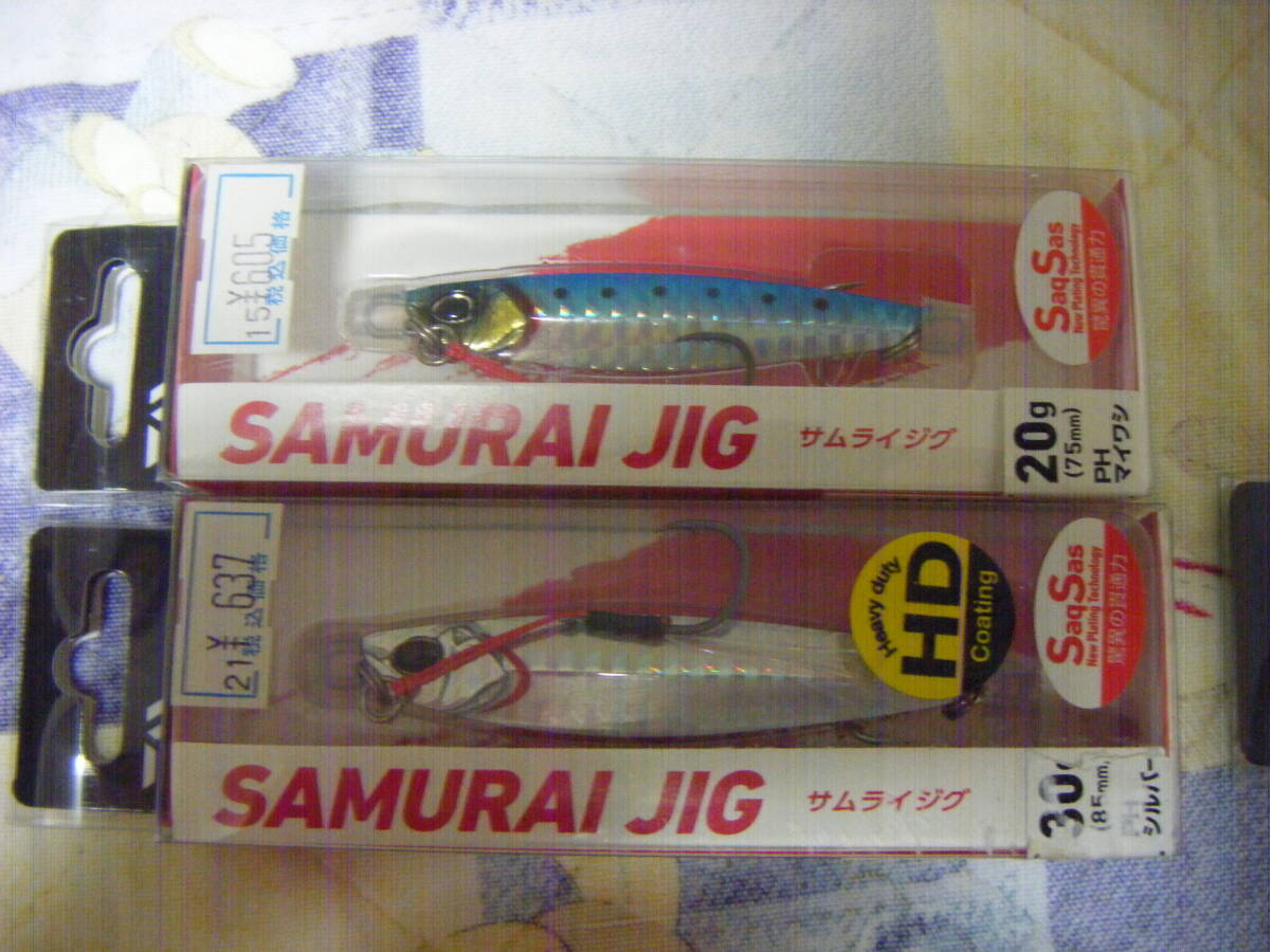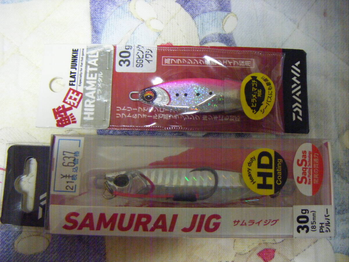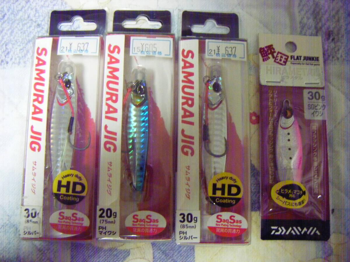 DAIWAの『SAMURAI JIG 30g & 20g』3個と『FLAT JUNKIE HIRAMETAL 30g』1個、未使用・未開封です。