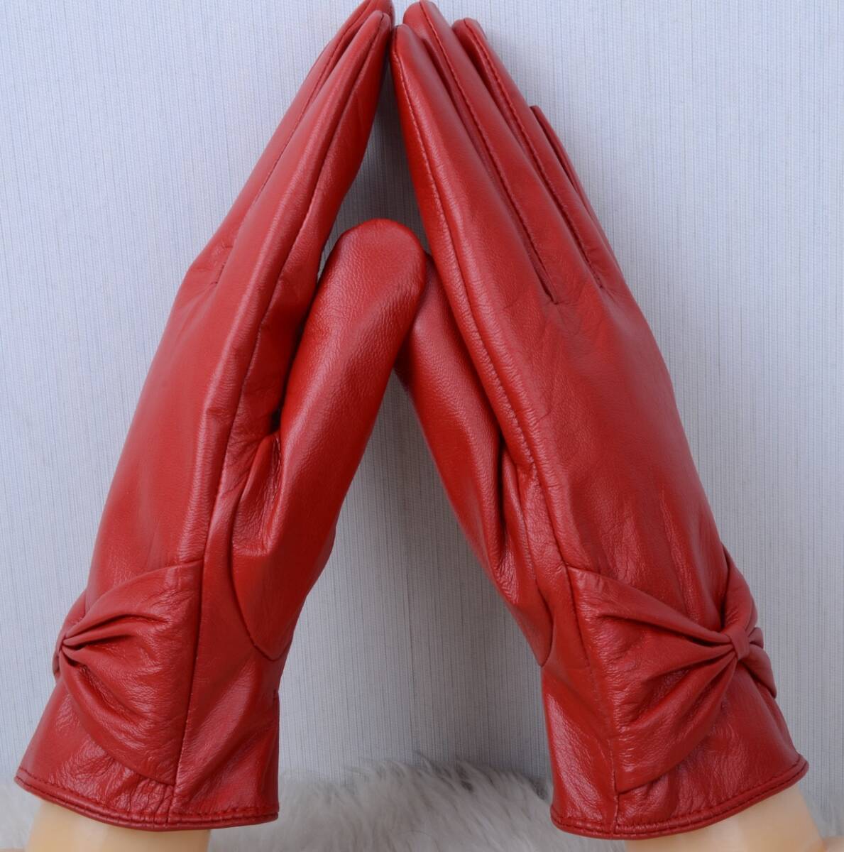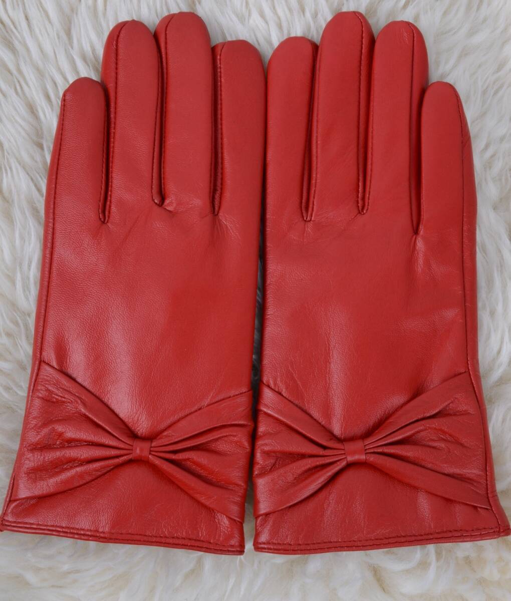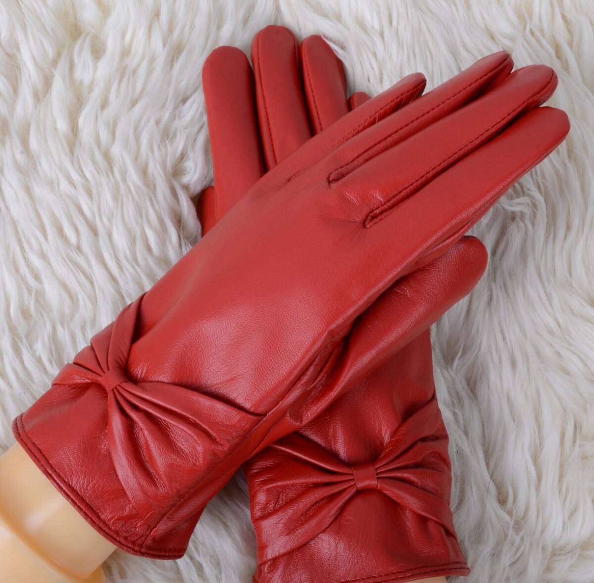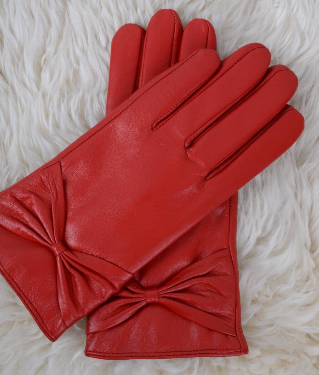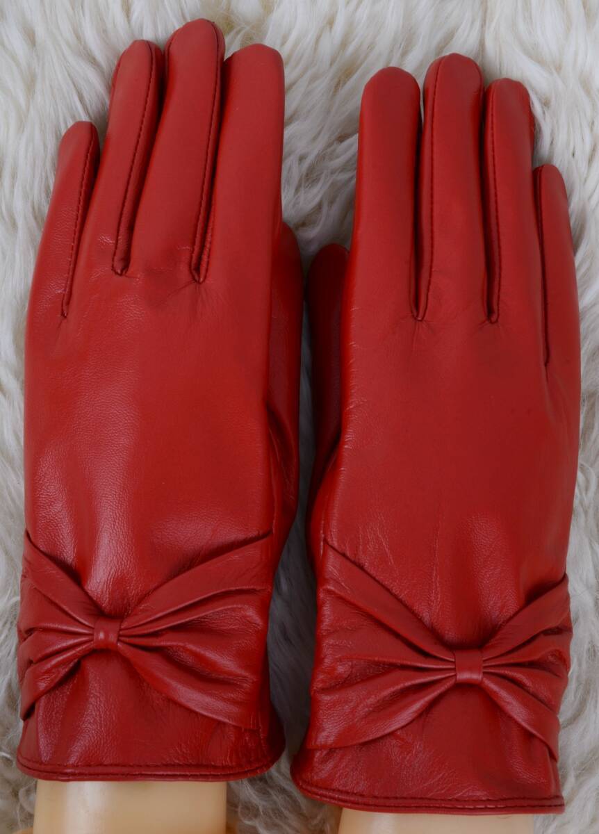| スマホ対応★高級ラムレザーが贅沢な手袋 赤 蝶結び 女性用 グローブ革手袋 | |||