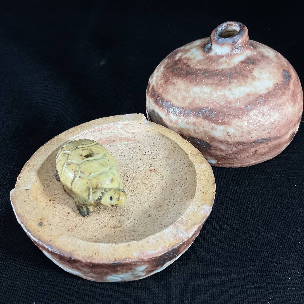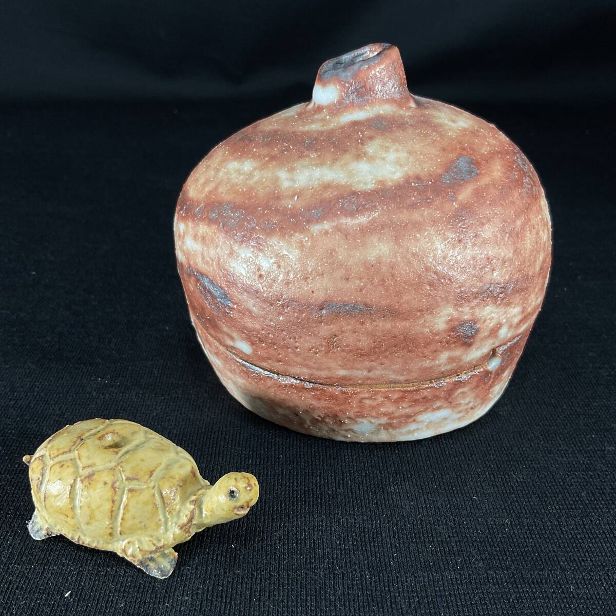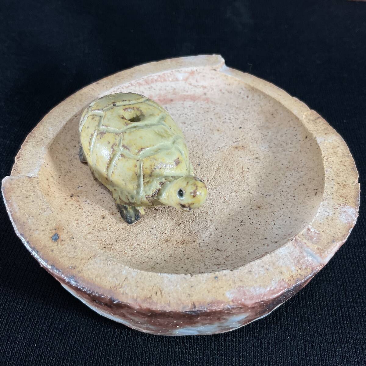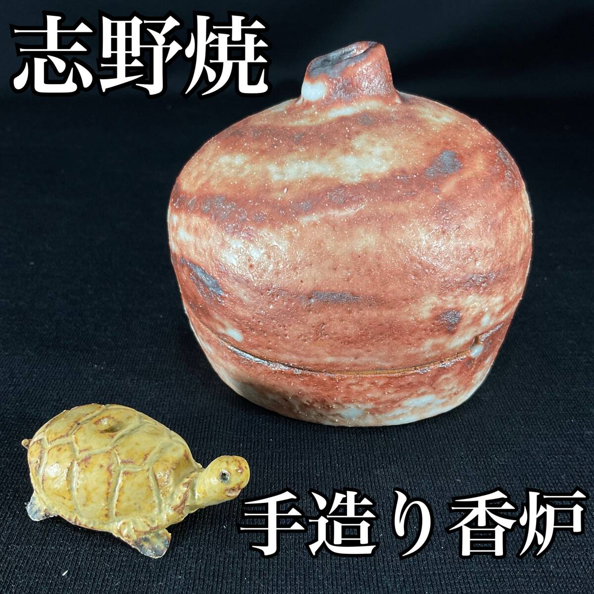 【未使用】美濃焼 志野焼 手造り 香炉 赤茶系 お香立て 亀 インテリア コレクション(E287)