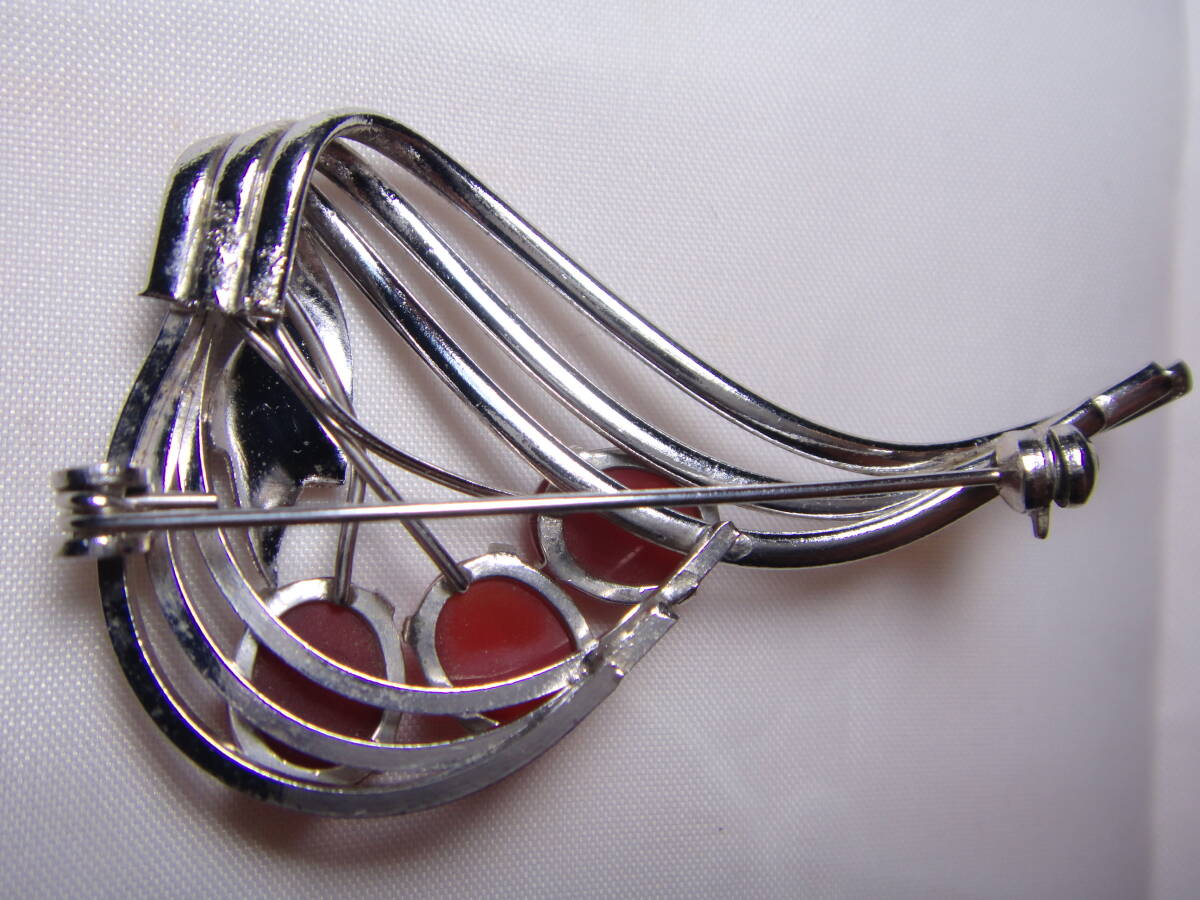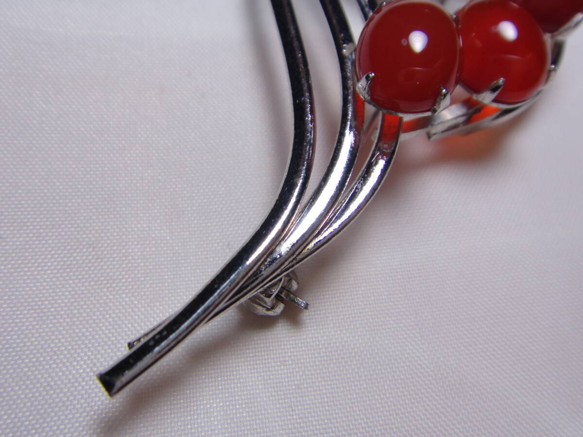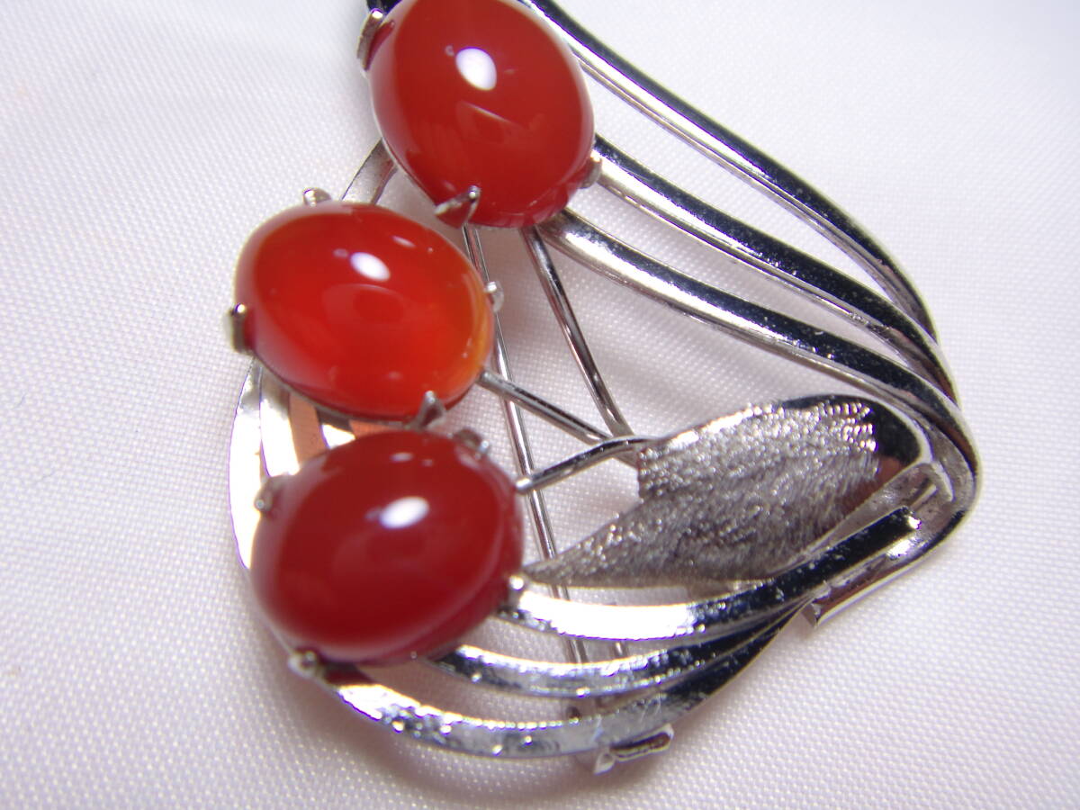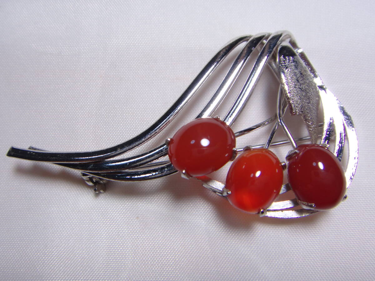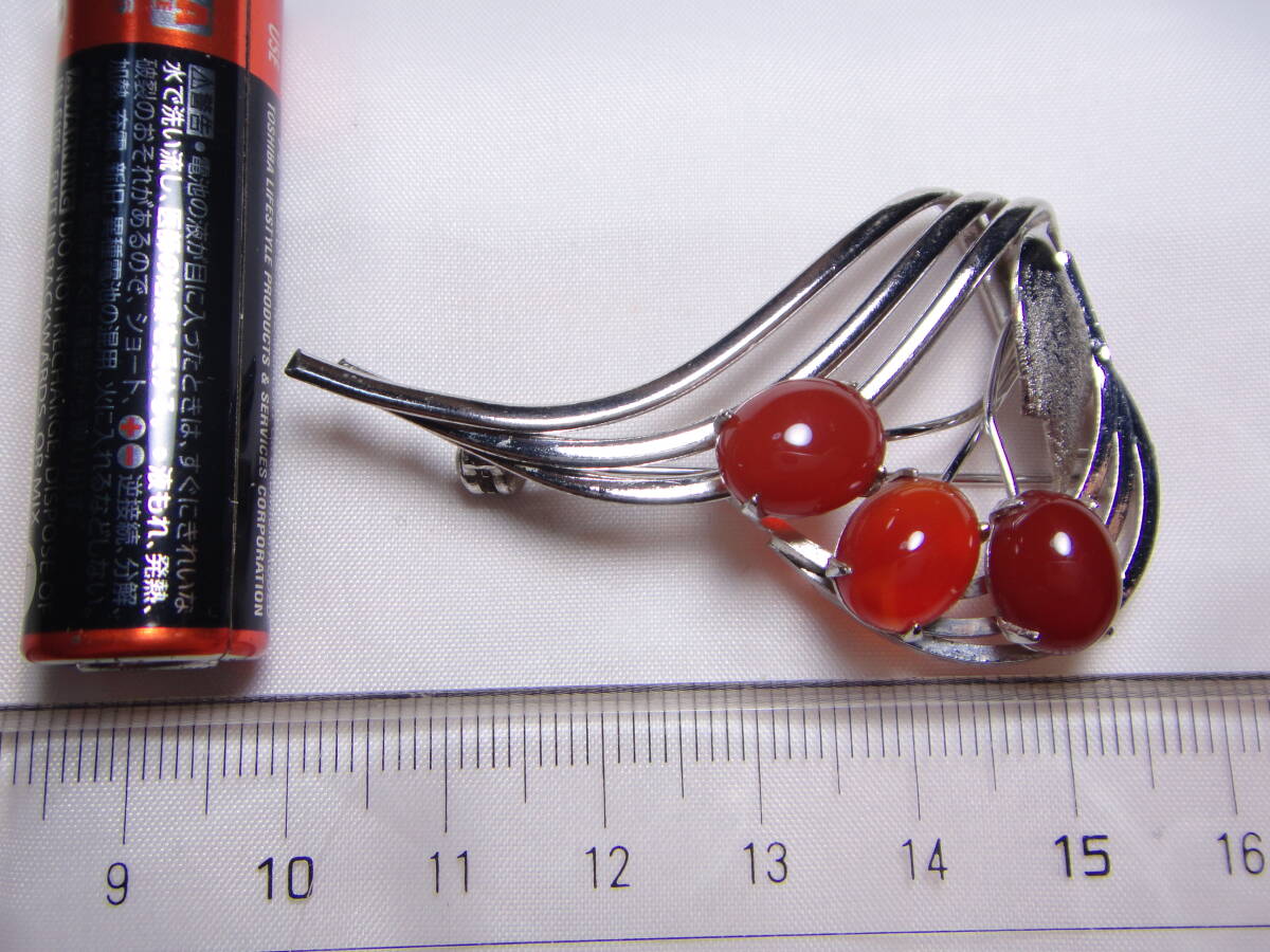 天然石 カーネリアン ブローチ 昭和レトロ ヴィンテージ D608