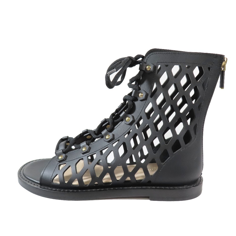 未使用 21ss Christian Dior クリスチャンディオール D-Trap ブーツサンダル Dトラップ フラット レースアップ シューズ 黒 36