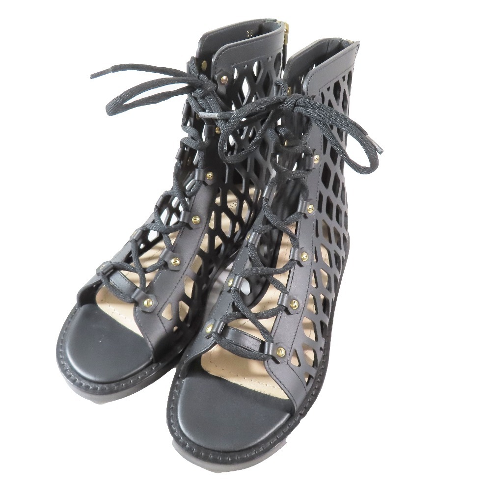 商品名:21ss Christian Dior クリスチャンディオール D-Trap ブーツサンダル Dトラップ フラット レースアップ シューズ 黒 36