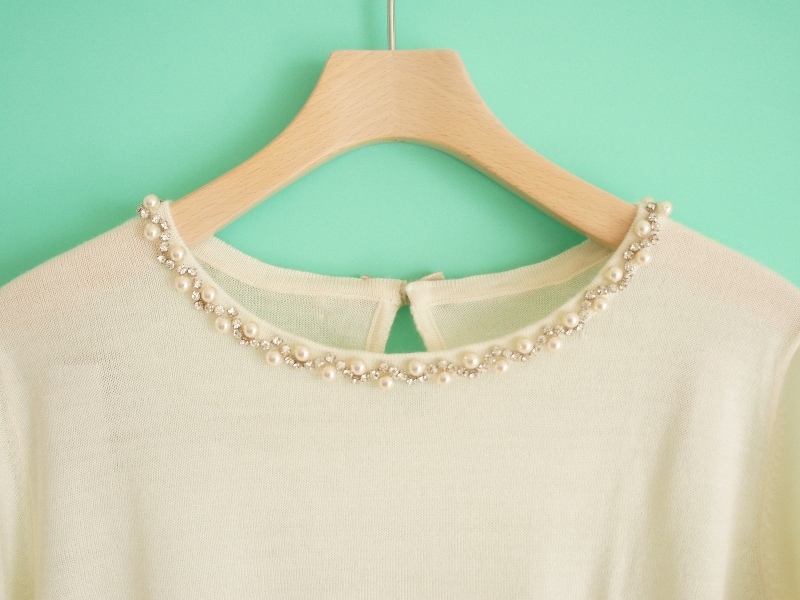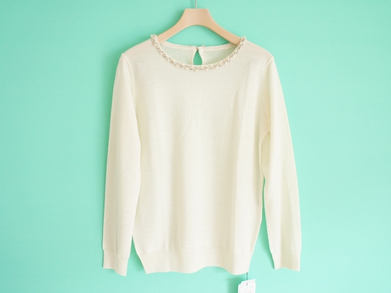 襟ぐりビジュー ハイゲージ ニット