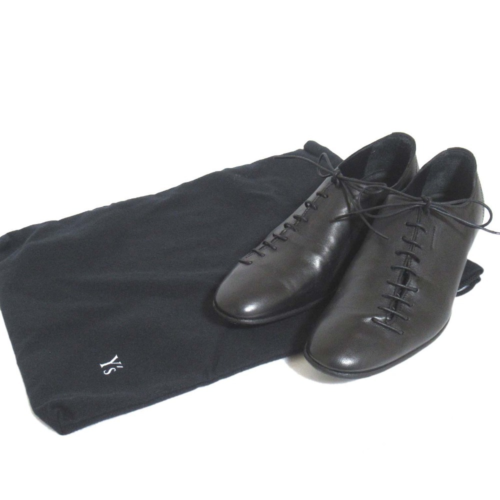 美品 Y's Yohji Yamamoto ワイズ ヨウジヤマモト レザー アシンメトリー レースアップ シューズ サイズ4 約24cm ブラック