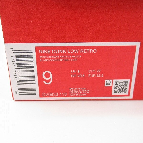 | 【未使用】NIKE/ナイキ DUNK LOW RETRO "Bright Cactus" ダンク DV0833-110 27.0 /080 | |||||||||||||||||||||||||