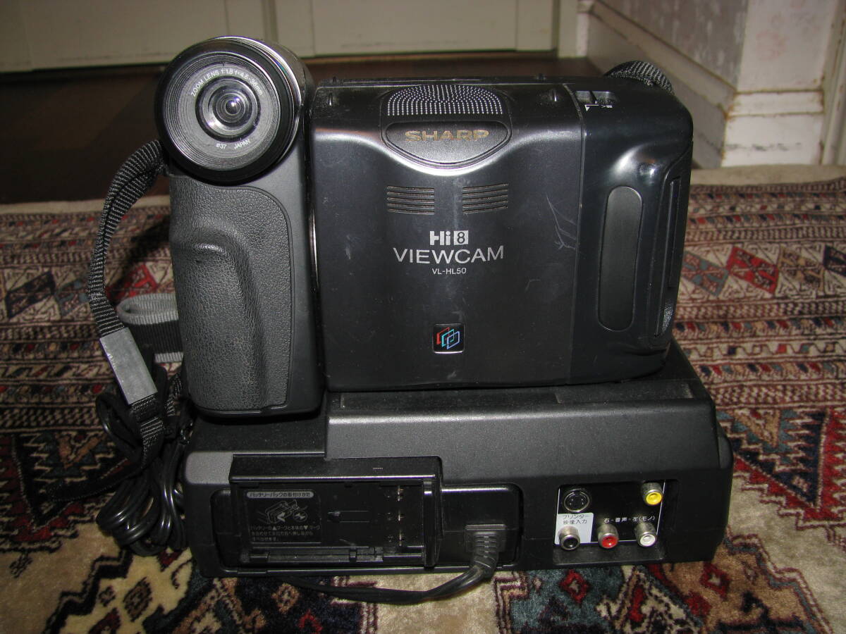 シャープの Hi8 8ミリビデオカメラ ビューカム VL-HL50です。再生、早送り、巻き戻しなどのテープ操作確認済みです。リモコン、ステーション、3色ケーブル付きでビデオデッキのように操作可能です。液晶画面が若干劣化していて写真のような状態ですが、テレビに映せば映像はキレイです。送料1200円(北海道、沖縄1600円)でお送りいたします。