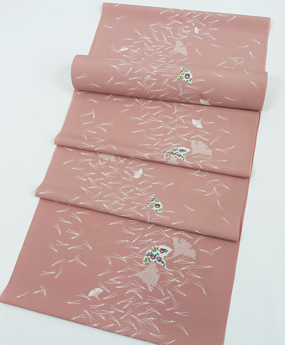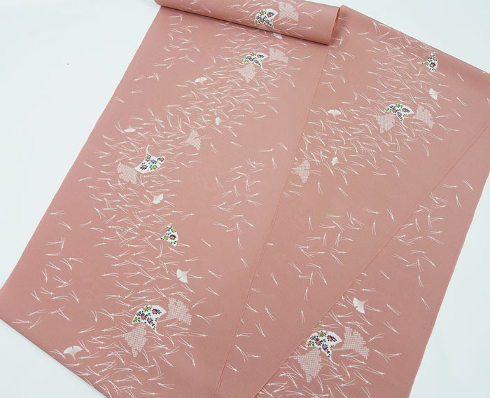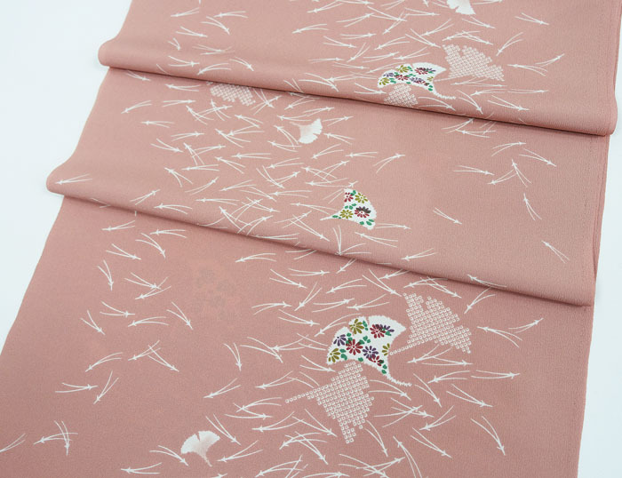 銀杏の葉に小花と型絞り柄の