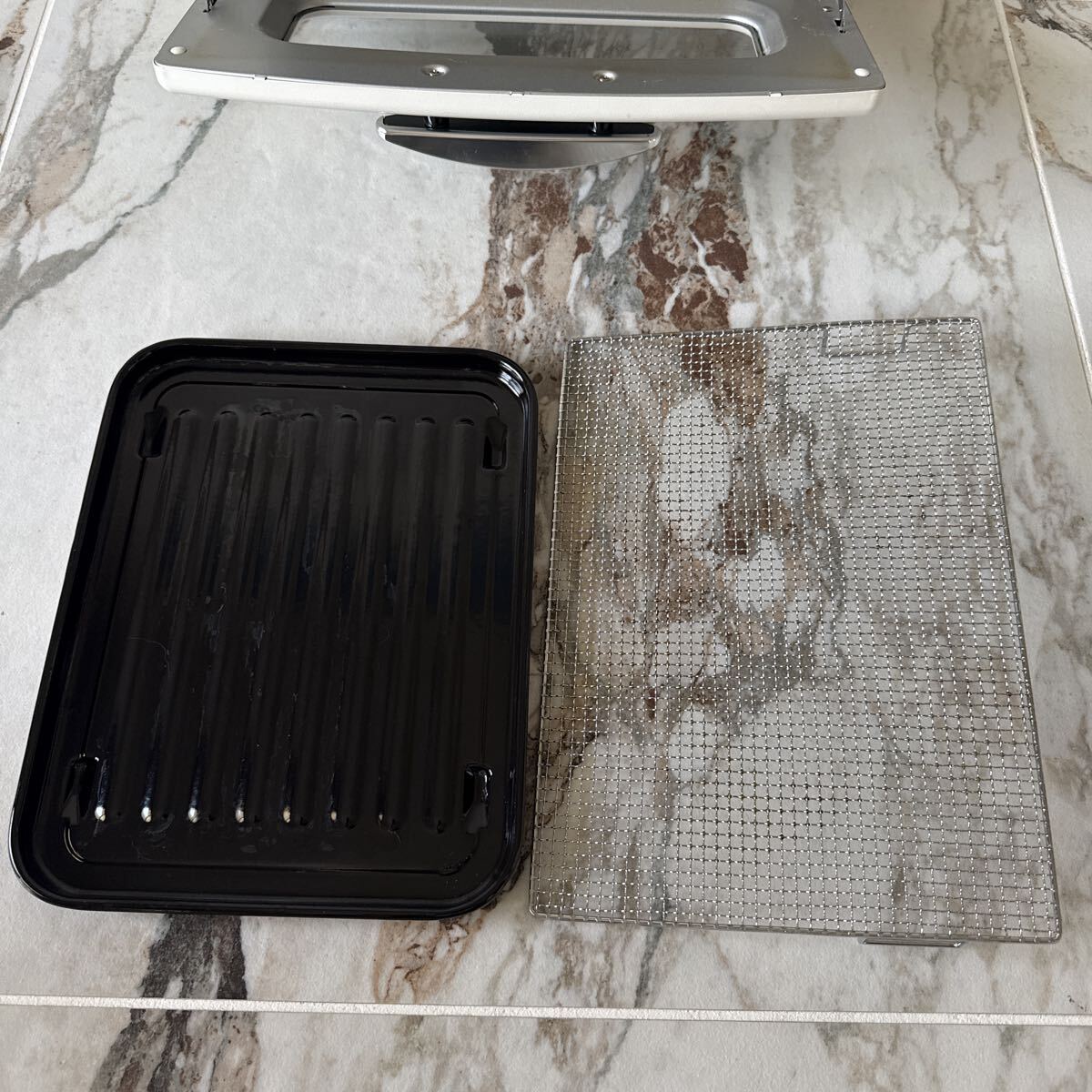 ドア内側にやや焼け跡、網とお皿にやや使用感あり。