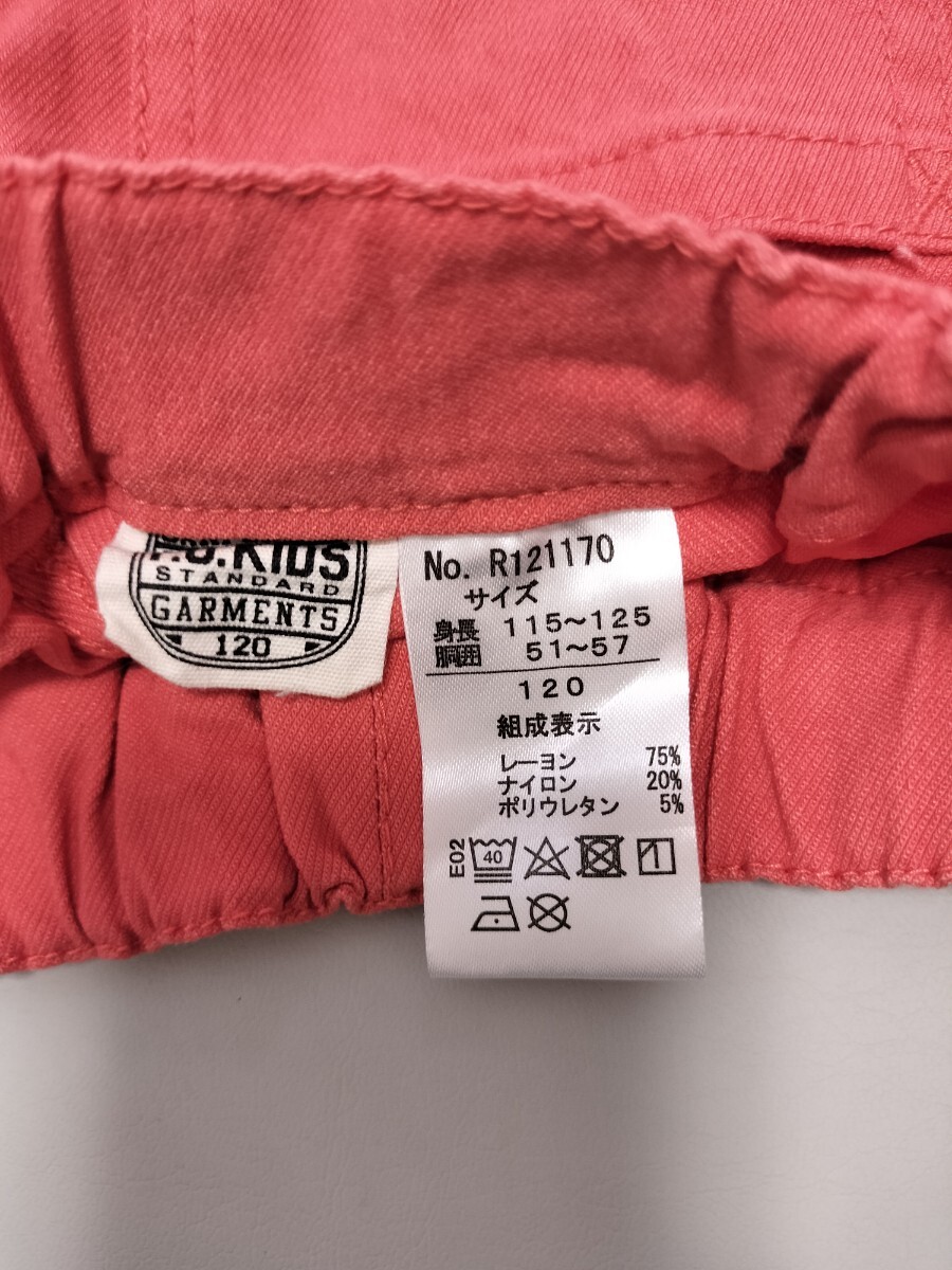 エフオーキッズキッズ用のレッド系パンツです。ウエストはゴムで履きやすく、普段使いにぴったりです。