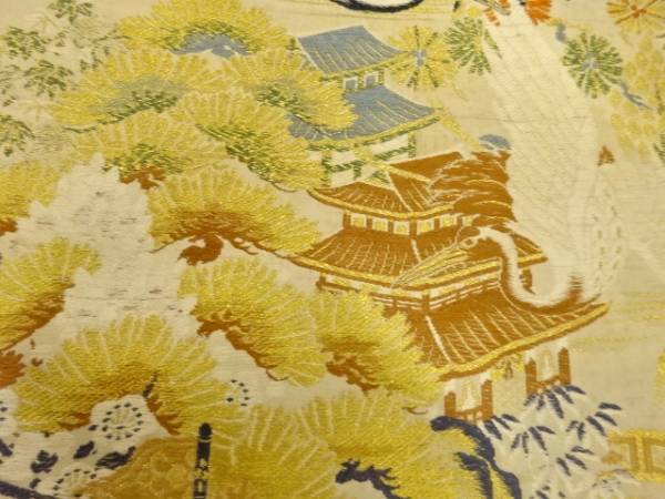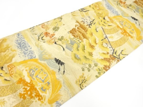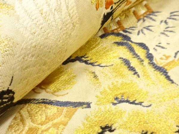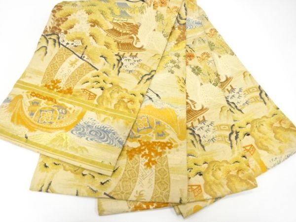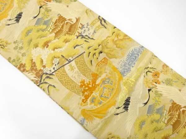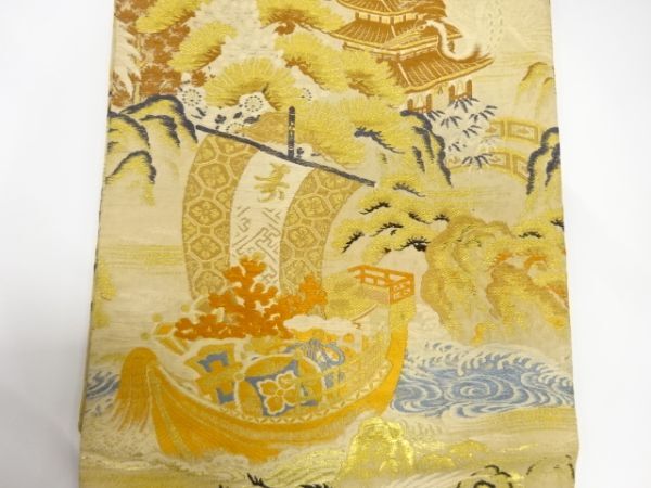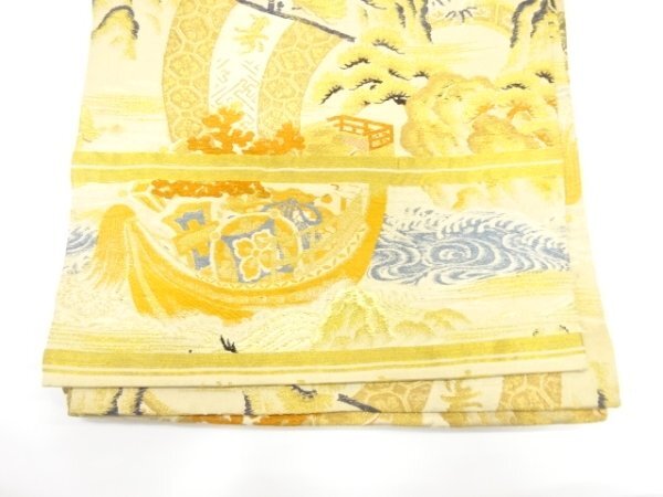 ys7533080; 宝舟に双鶴模様織出し丸帯(材料)【アンティーク】【着】