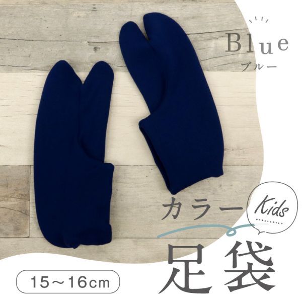 【キッズ カラーストレッチ足袋】 男女兼用 『ブルー・15-16㎝』 履きやすいソックスタイプ ストレッチ靴下 七五三 和装小物 k24-41