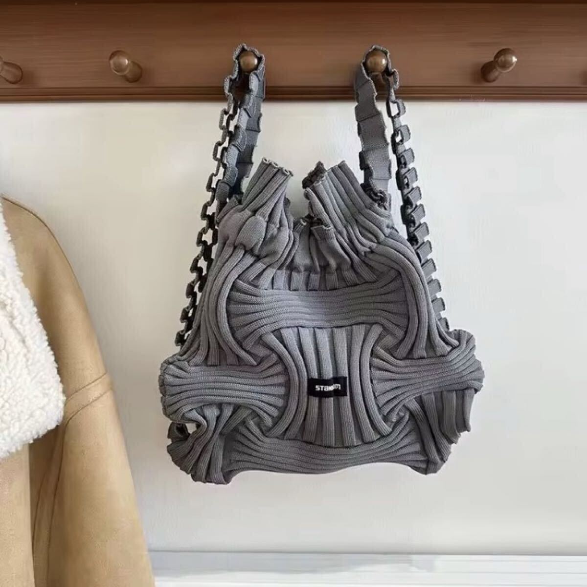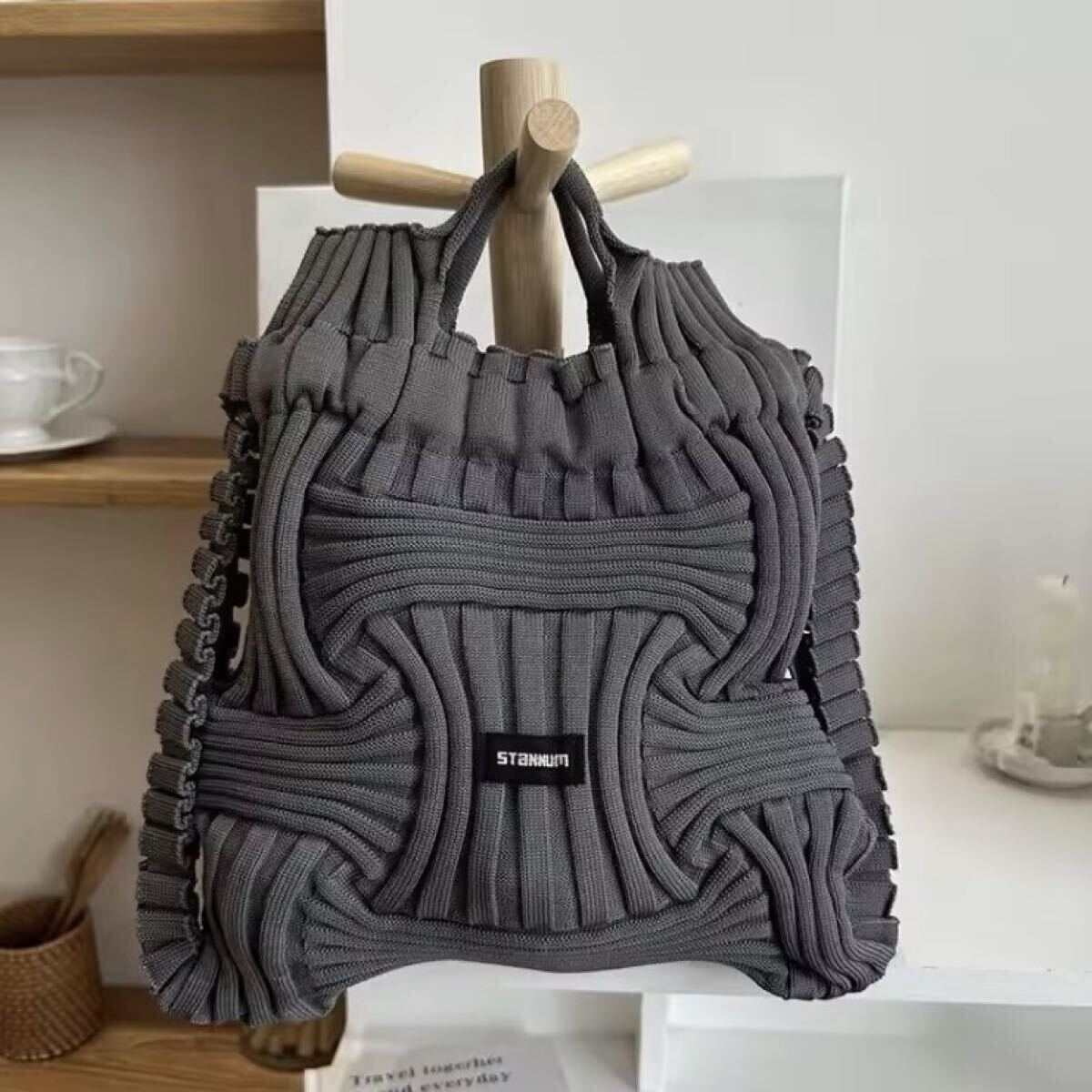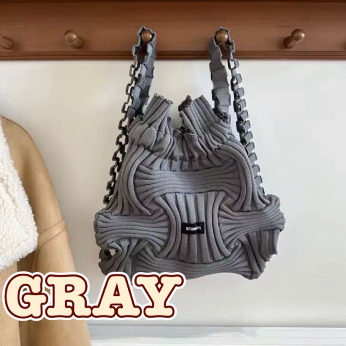 秋冬ファッションの定番・リブデザインで、軽量で持ち運びやすいバッグです。