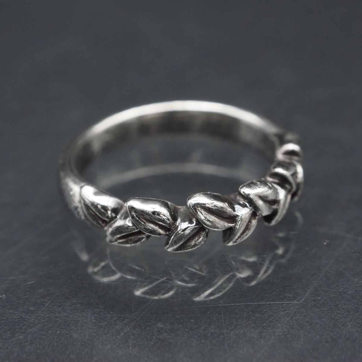 F734 ヴィンテージ SILVER刻印 リング リーフ デザイン シルバー 指輪 13号