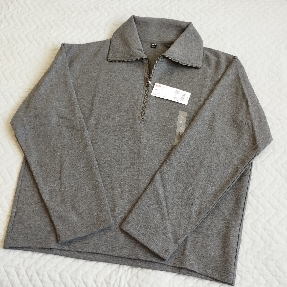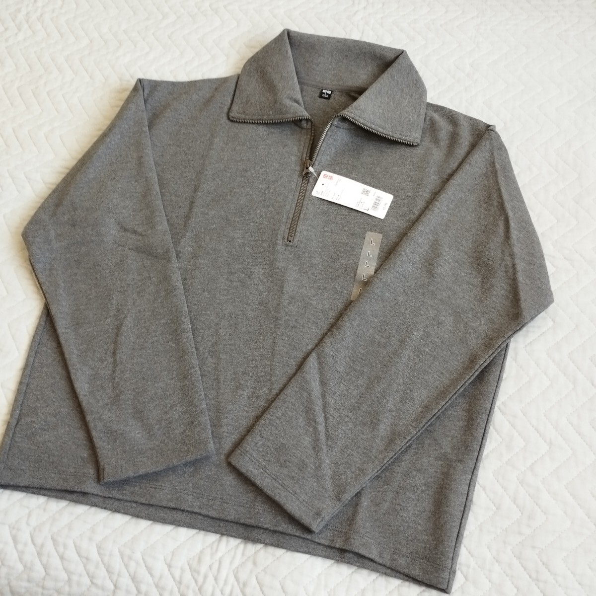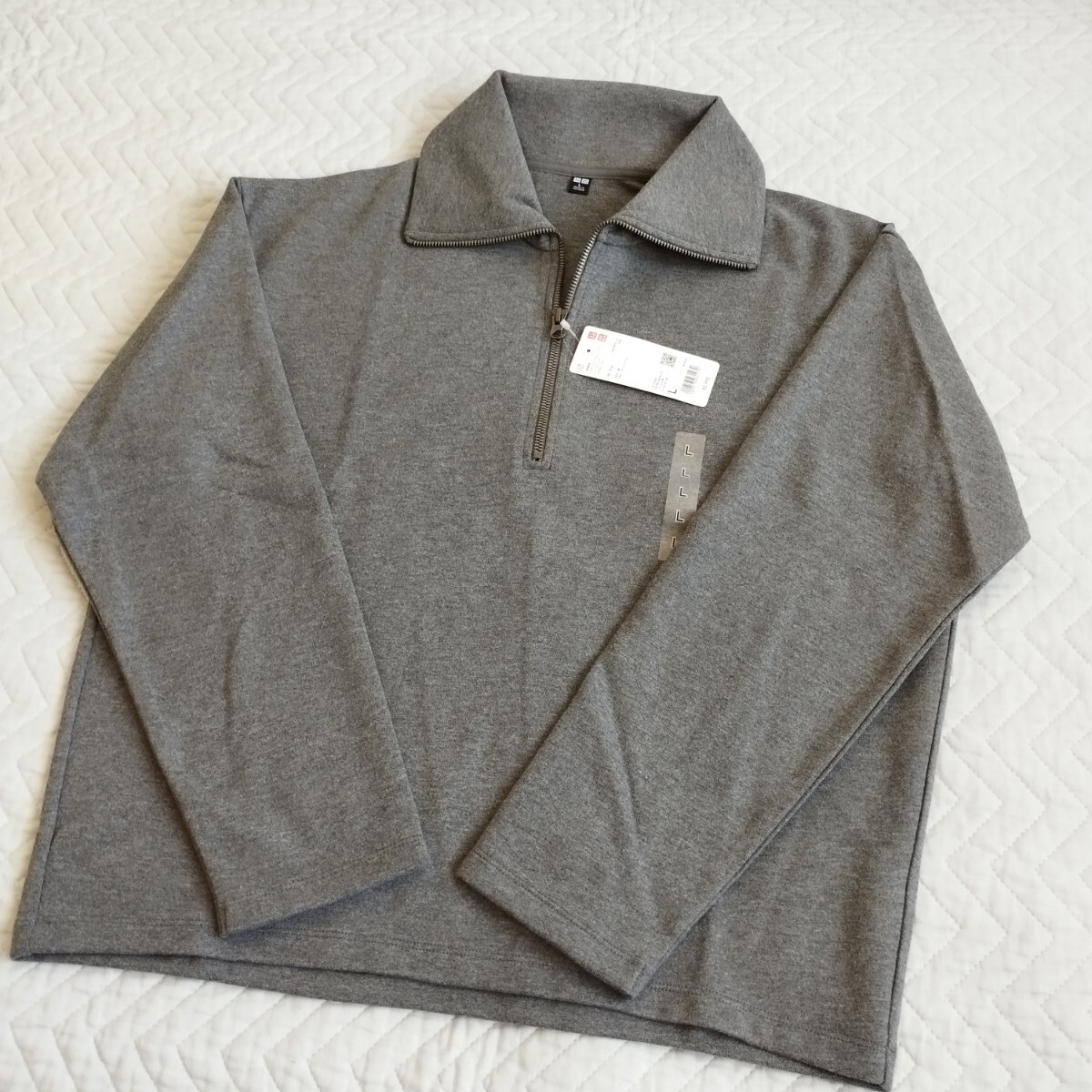 未使用 ユニクロ ブラッシュドジャージーハーフジッププルオーバー L レディース グレー 長袖 秋冬 お色違いも 匿名 送料無料