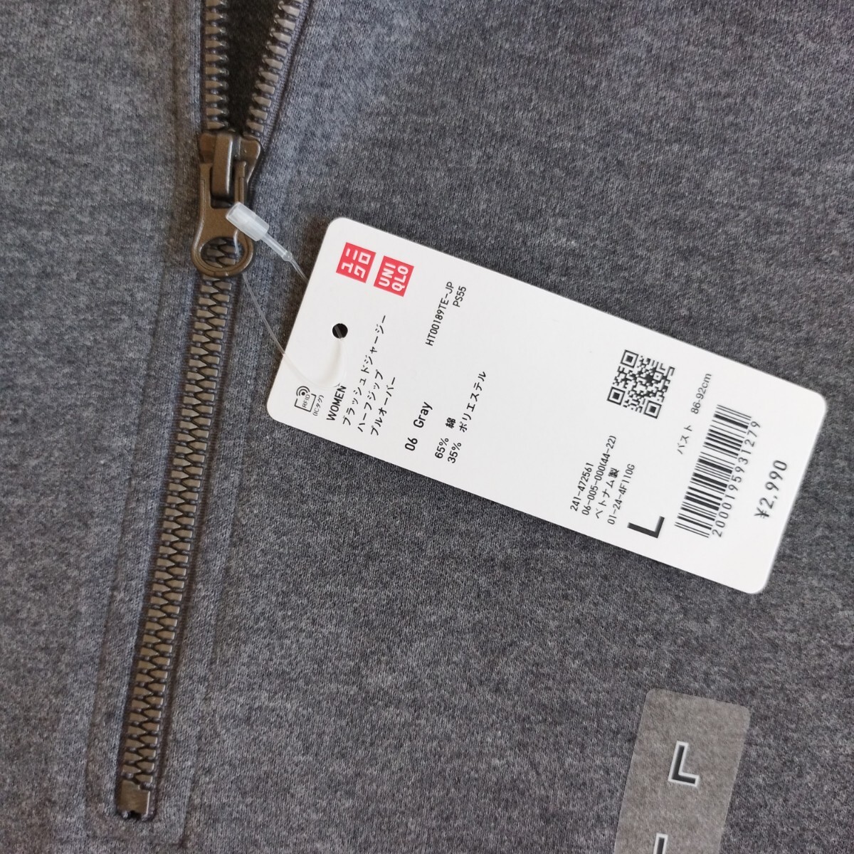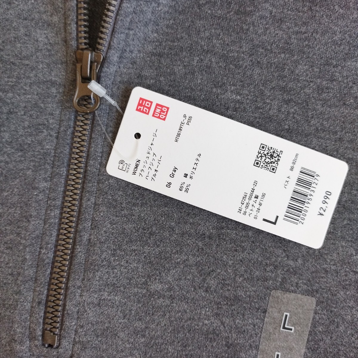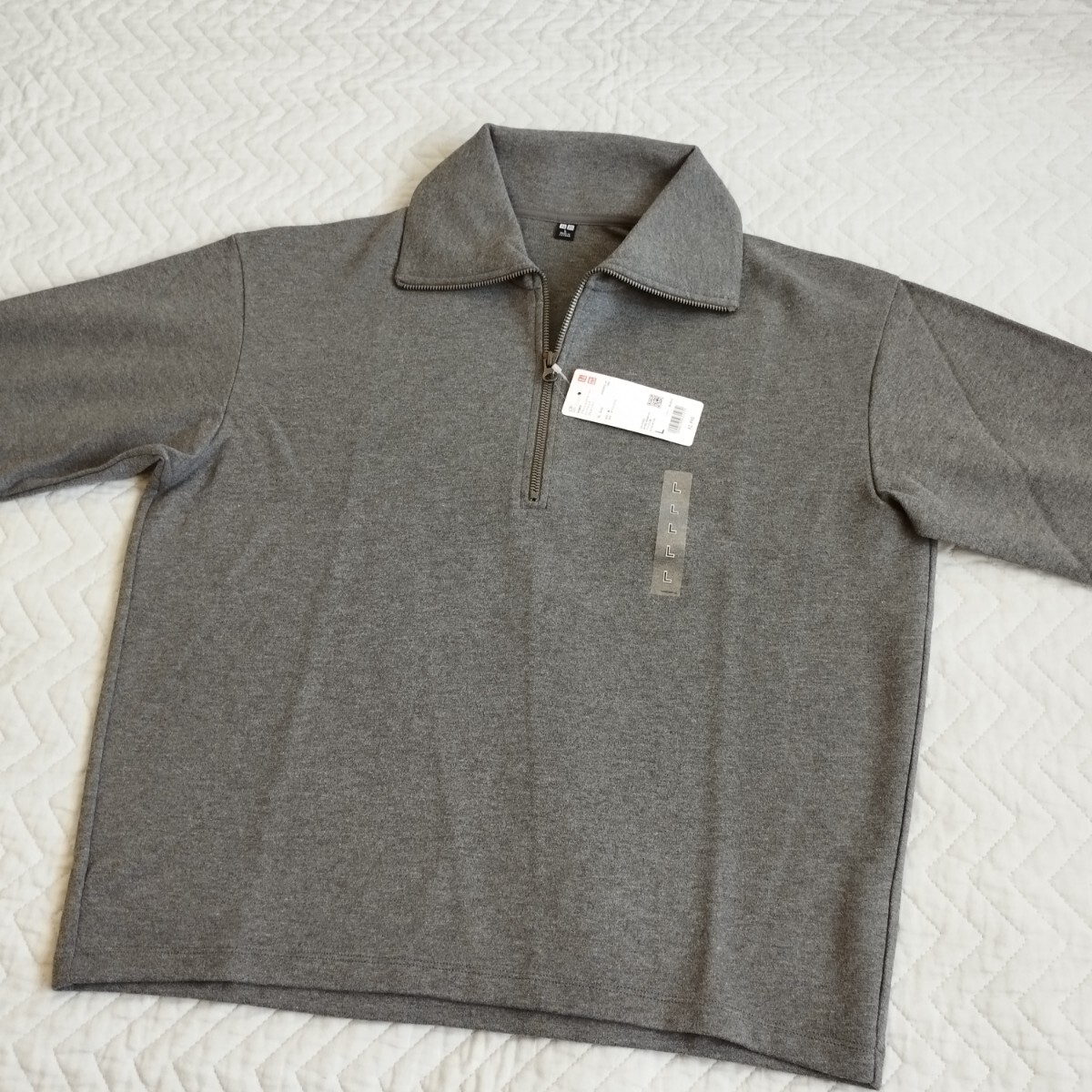 未使用 ユニクロ ブラッシュドジャージーハーフジッププルオーバー L レディース グレー 長袖 秋冬 お色違いも 匿名 送料無料