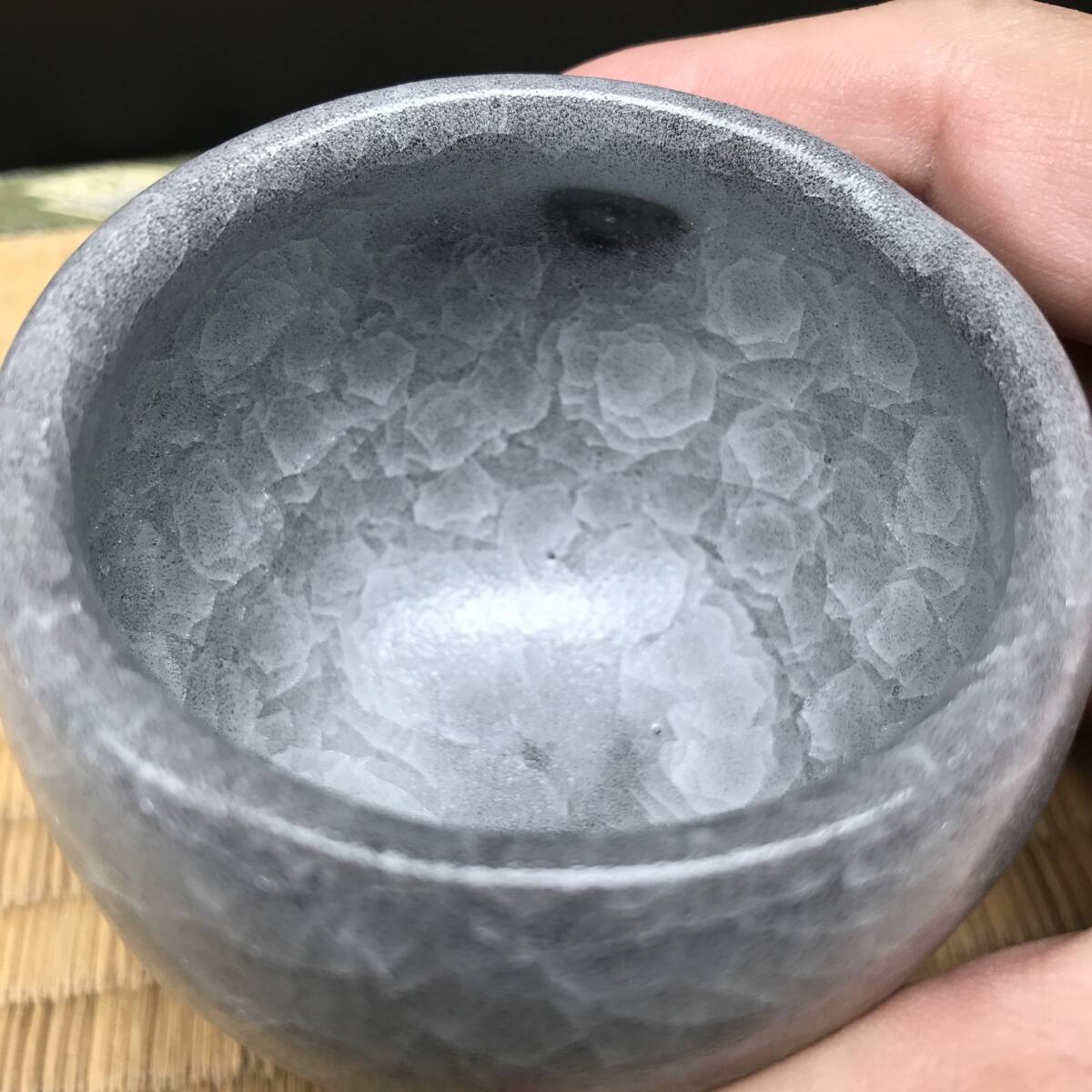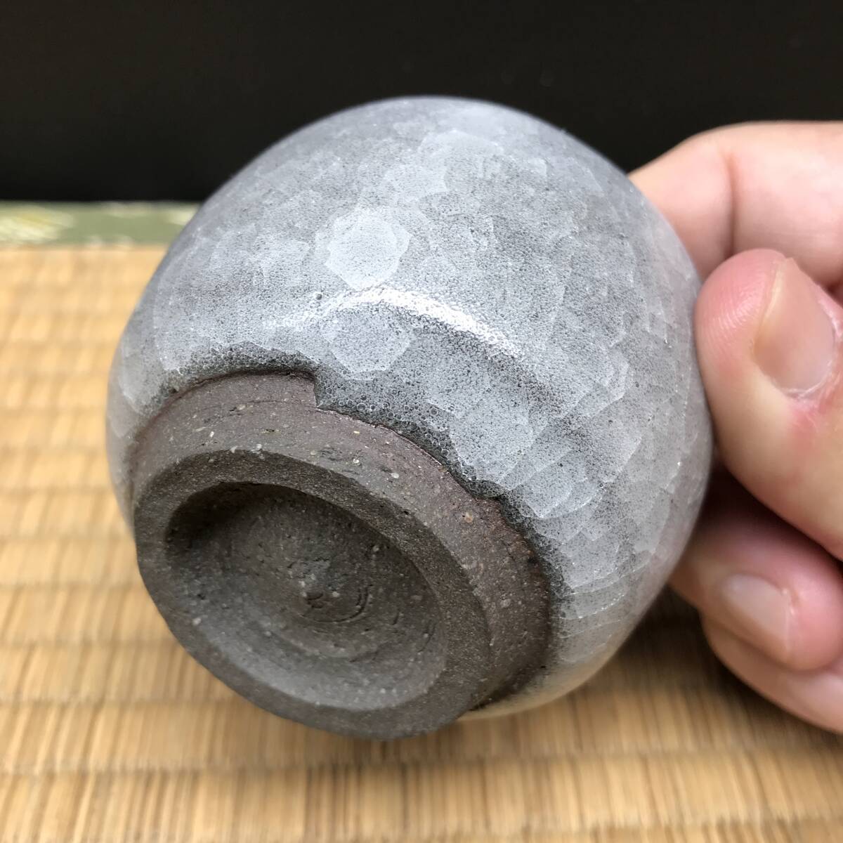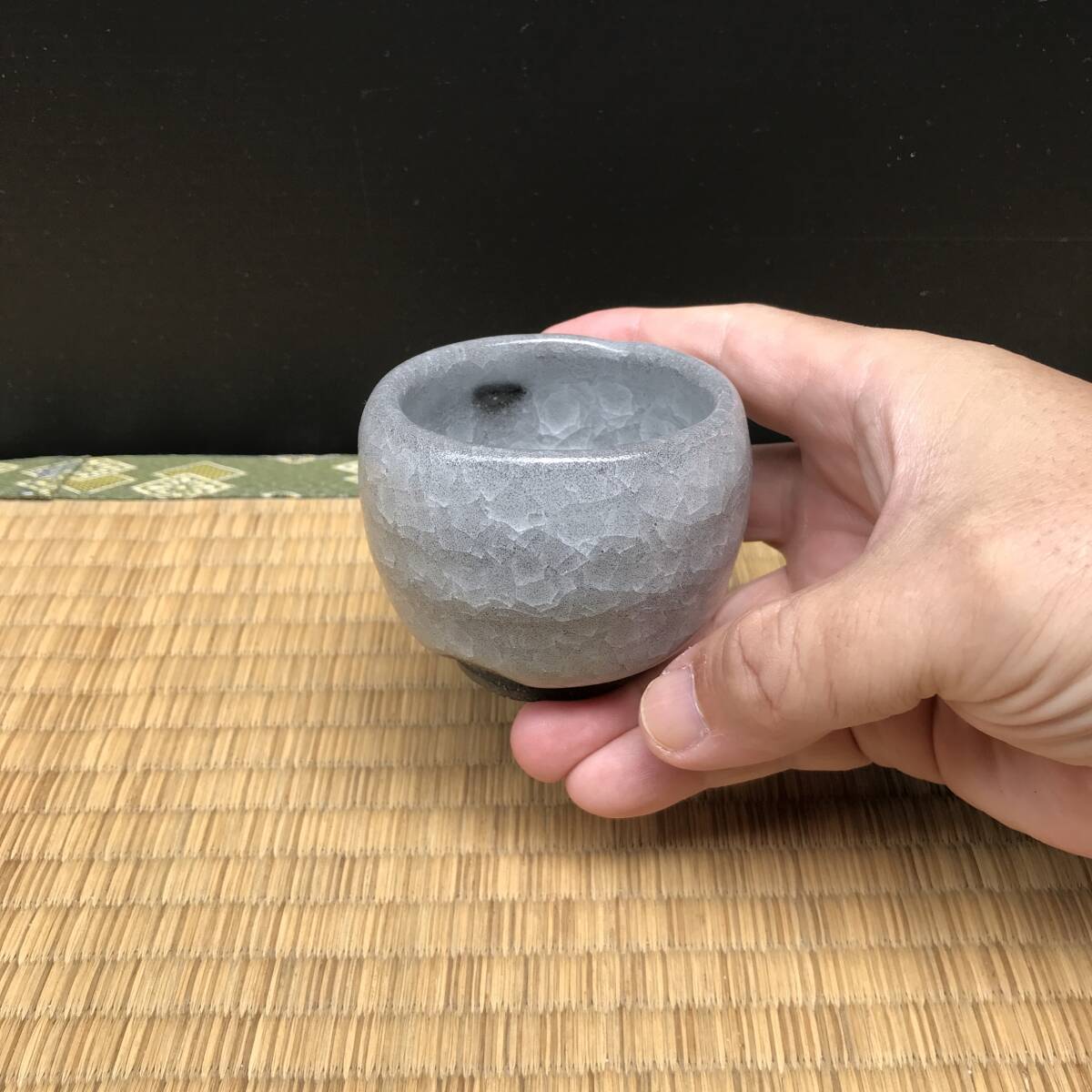 青磁氷裂釉のぐい呑み、清水卯一銘印?酒器 猪口 小鉢 盃 杯 珍味入れ(R70923_A)