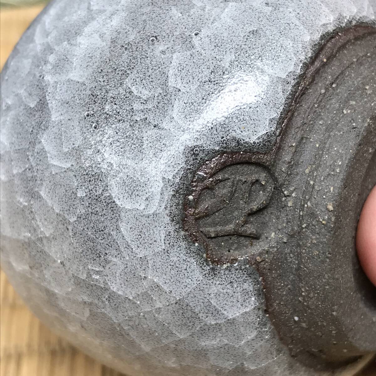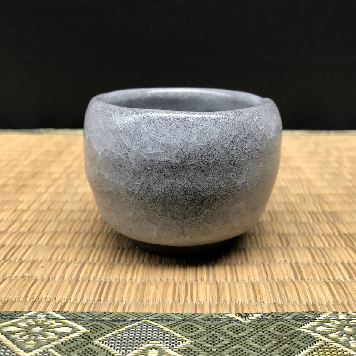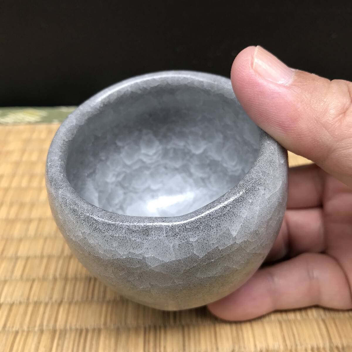 青磁氷裂釉のぐい呑み、清水卯一銘印?酒器 猪口 小鉢 盃 杯 珍味入れ(R70923_A)