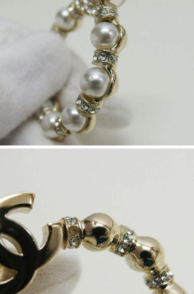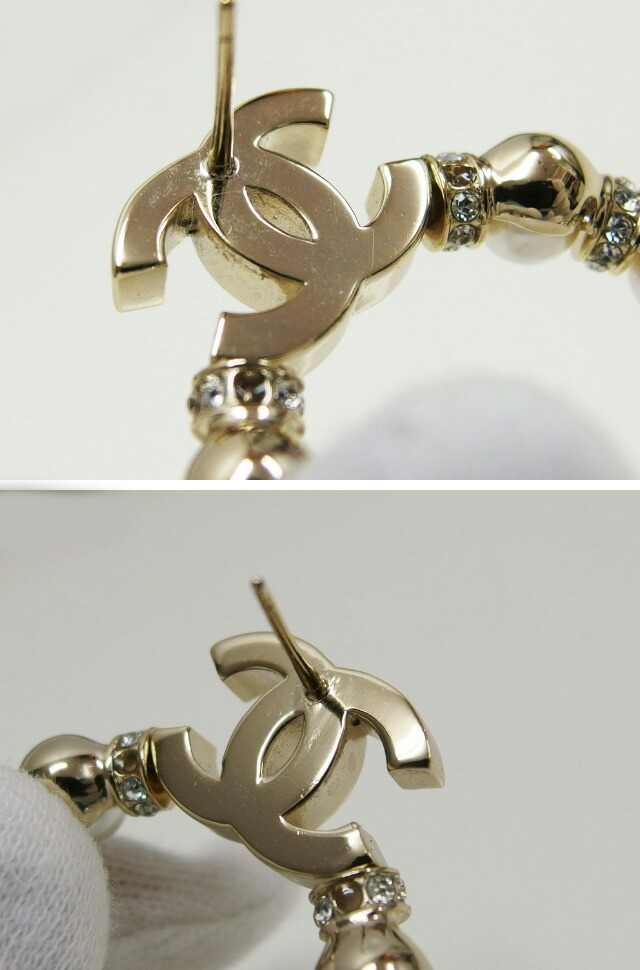 コメント | フェイクパールとラインストーンで飾られた、オープンサークルが豪華なピアスをご紹介致します。耳元をお洒落に演出する、存在感抜群な逸品!煌びやかなココマークでブランドアピールもバッチリです。 |