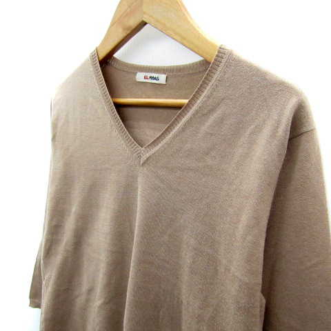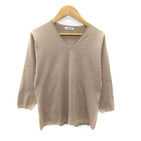 エルミダ EL MIDAS ニット カットソー 七分袖 Vネック 無地 ピンクブラウン /SY48 レディース
