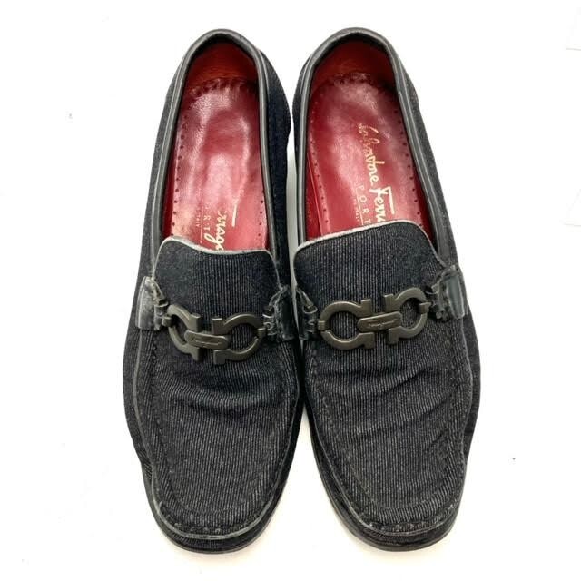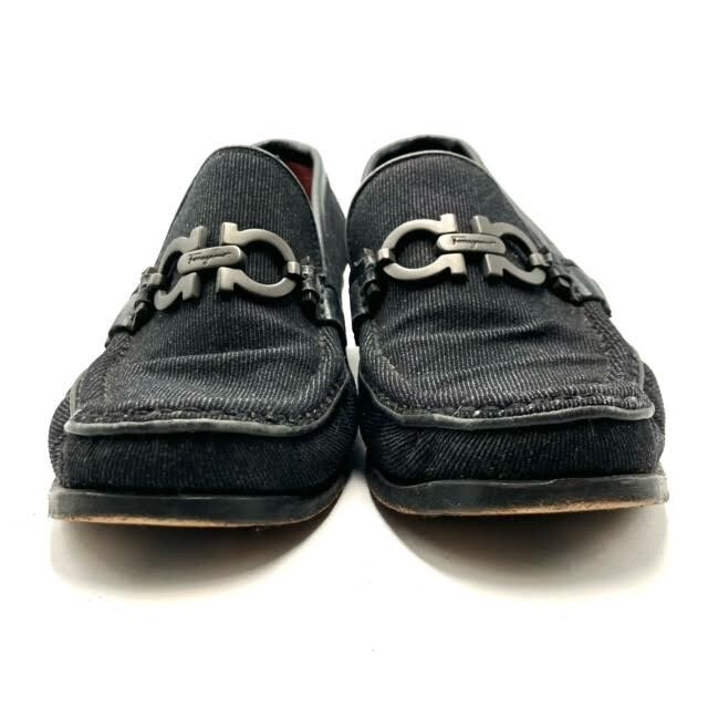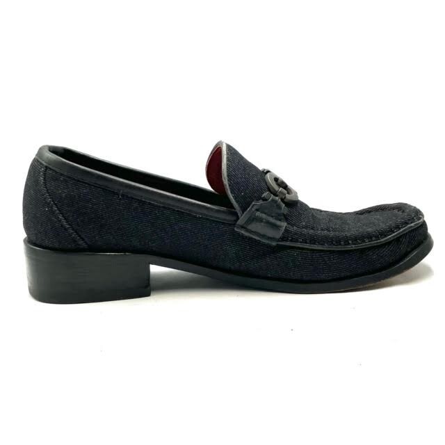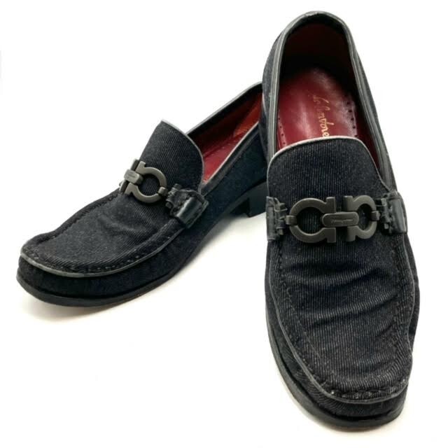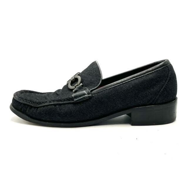 仙6 Salvatore Ferragamo デニムキャンバス ガンチーニ ローファー 6 23.5cm相当 グレー サルヴァトーレフェラガモ レディース イタリア製