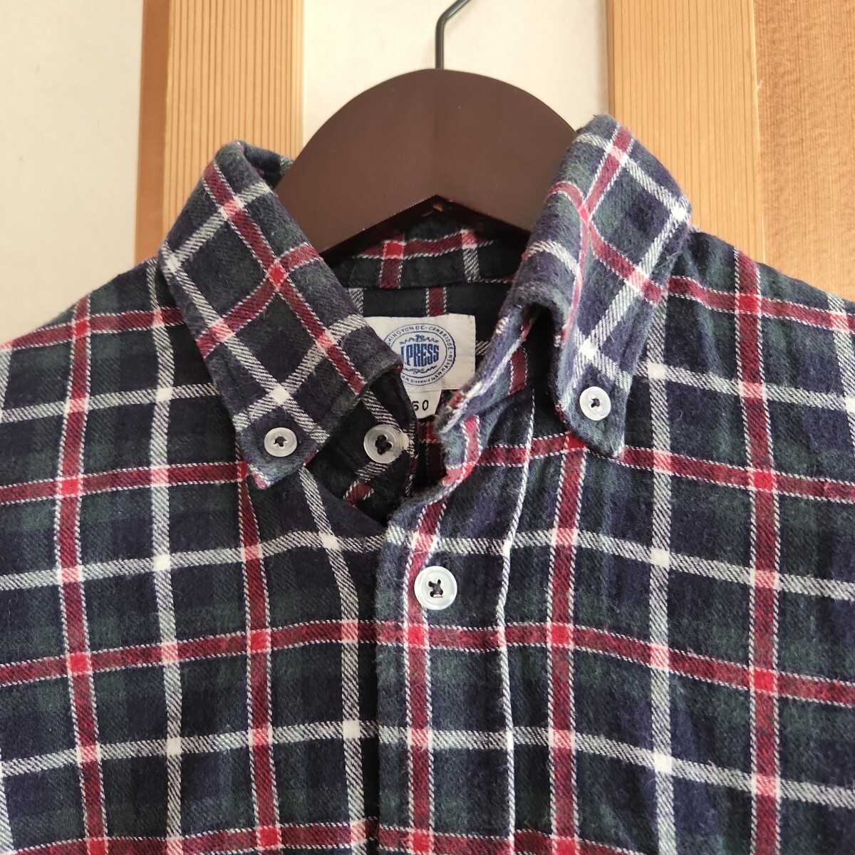 J.Press(ジェイプレス)のチェック長袖ネルシャツです。サイズアウトした為出品します。肌寒い時の羽織ものとしてカジュアルなシーンで着回しやすいデザインです。
