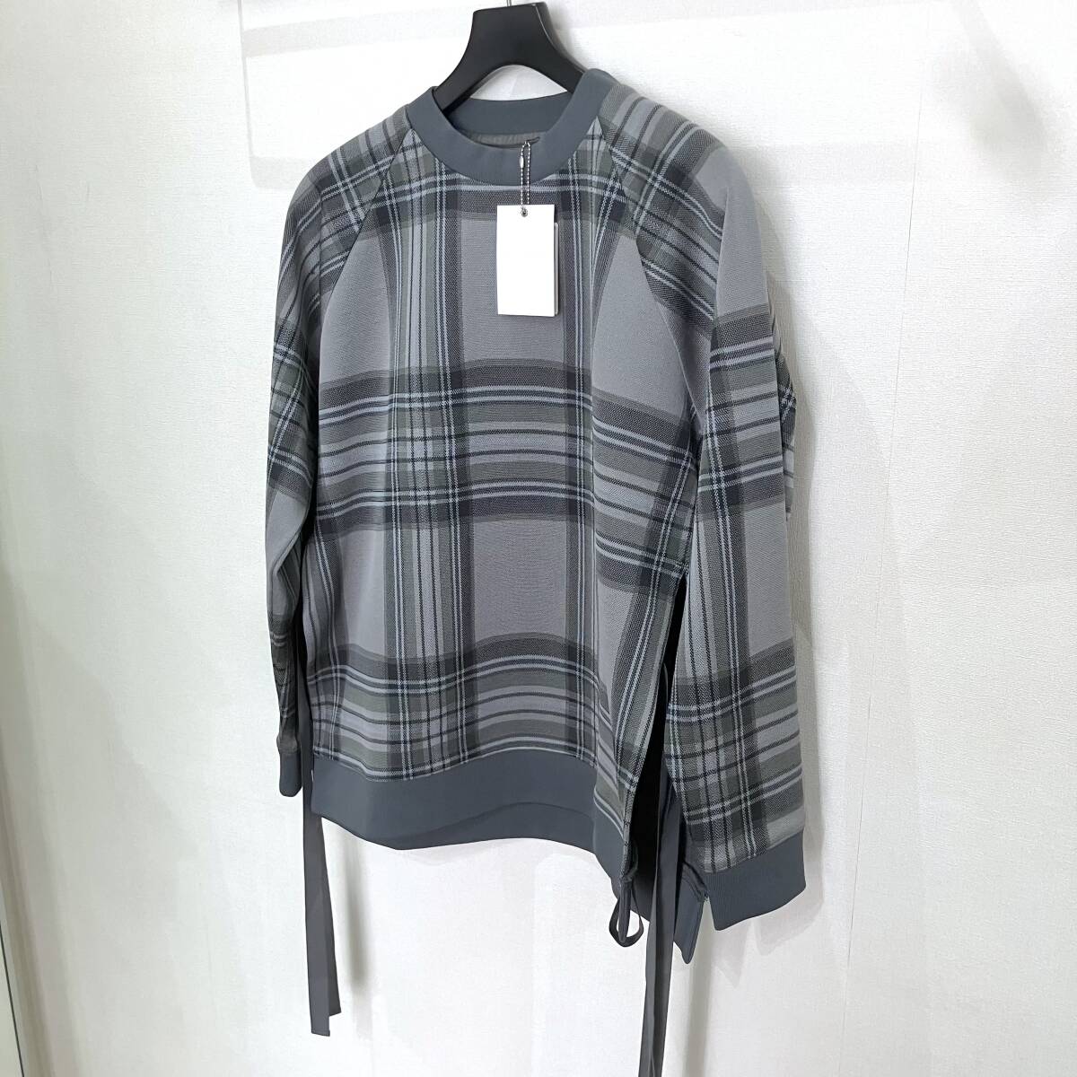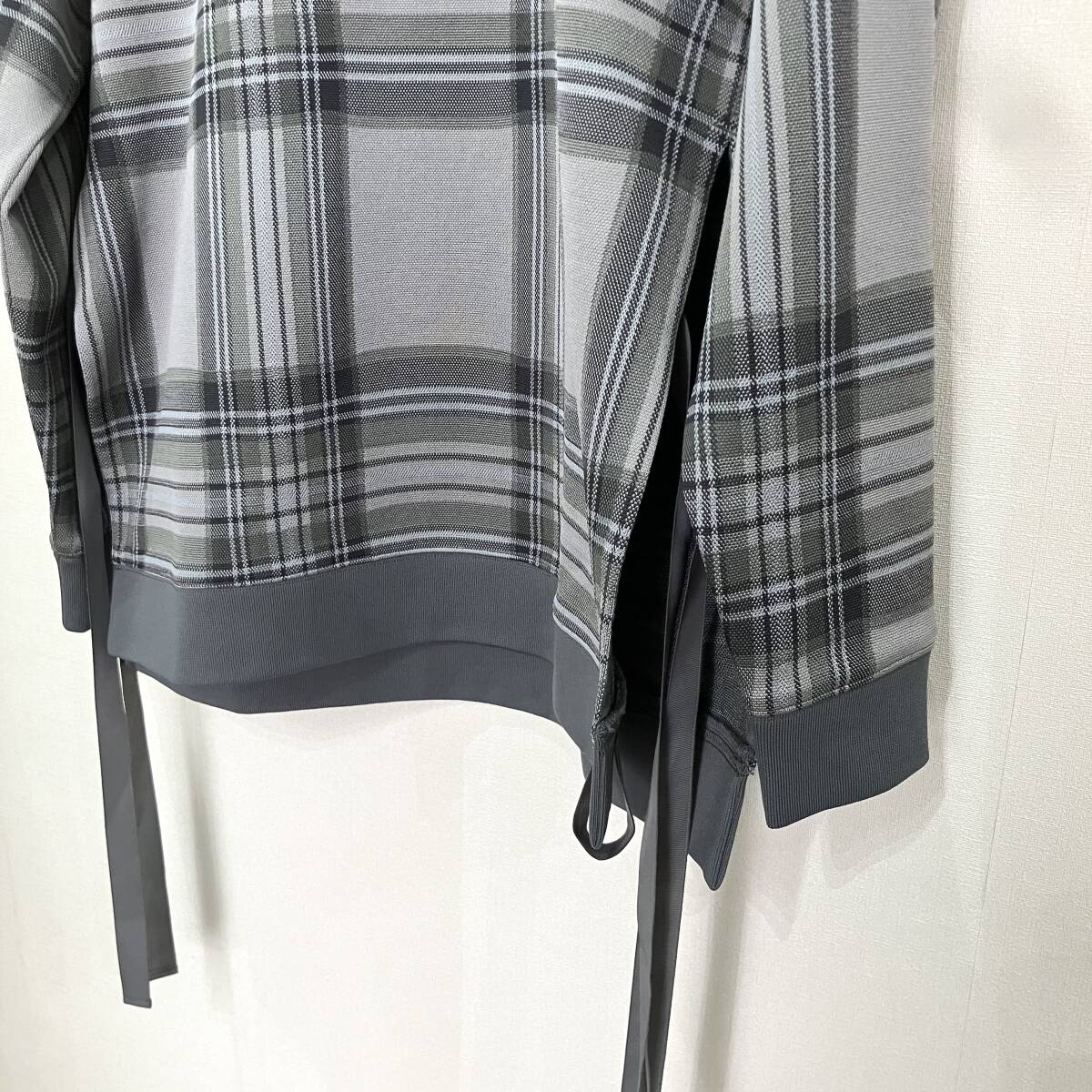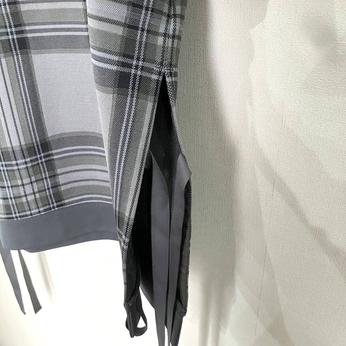 ホワイトマウンテニアリングらしいオリジナルチェック柄をジャガードで表現したアイテムです。デザイン性も特徴的で、脇下には大きなスリットが入りテープでアレンジできるデザインになっています。ポリエステル素材の伸縮性を強めにした生地は、型崩れしにくく着心地にも配慮した素材使いは、快適に着ていただくことのできる仕上がりに。