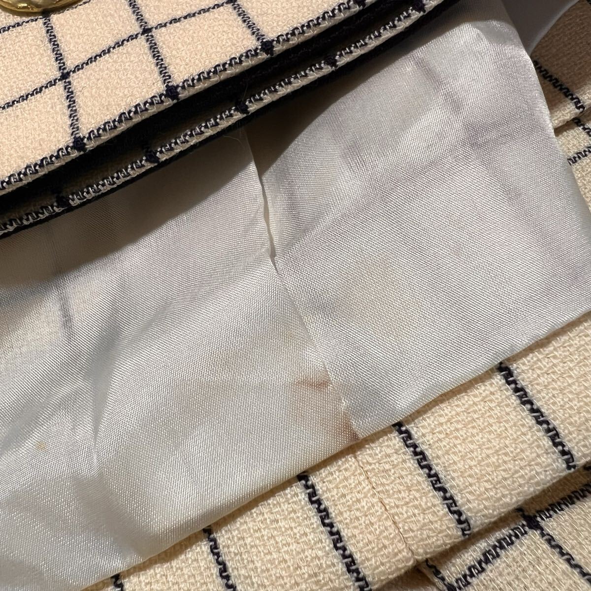商品名:C2973 mila schn ミラショーン ウィンドウペンチェックセットアップ タグあり 年代物 経年変色箇所あり アイボリー地