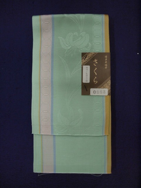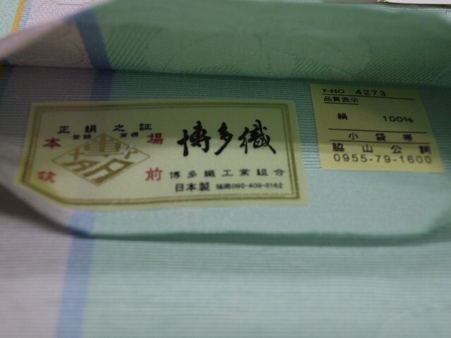 カジュアルに簡単に結ぶことができる半幅帯です。小紋や洗える着物、浴衣などにいろいろ結べます。文庫結びや貝の口など結び方もいろいろ、帯〆や帯揚げもいらず気軽にお使いいただけます。本場筑前博多特選小袋帯 色合いや織りも面白くリバーシブルで素ので両面、楽しめます。 素材:絹100% 森博多織謹製日本製 本場博多金印付き幅:約15cm 長さ:約359cmレターパックで発送させていただきます商品をご覧になりたいお客様は御連絡の上ご来店ください03-3663-7071(きもの遊着苑・杉山(株))<平日10時から17時まで>接写の加減で多少色が実物と異なる場合がございますのでご了承の上、落札して下さい <発送・ご要望>土曜・日曜・祝日を除く10:00~17:00までとなります実店舗がございますので商品が売り切れてしまう場合はご了承下さい