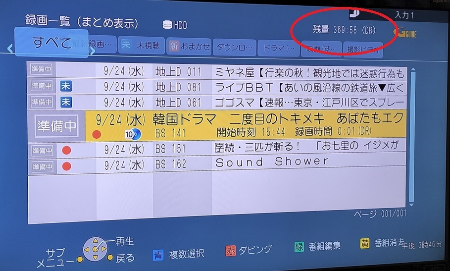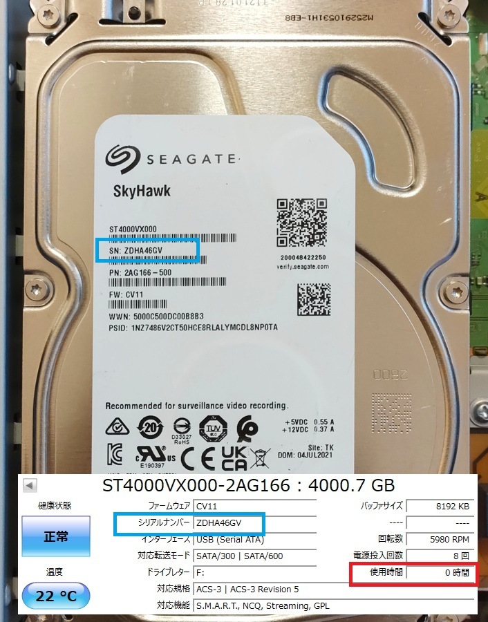 内部HDDを500GBから未使用4TB(ST4000VX000)へ換装してあります。(DR録画約370時間)
