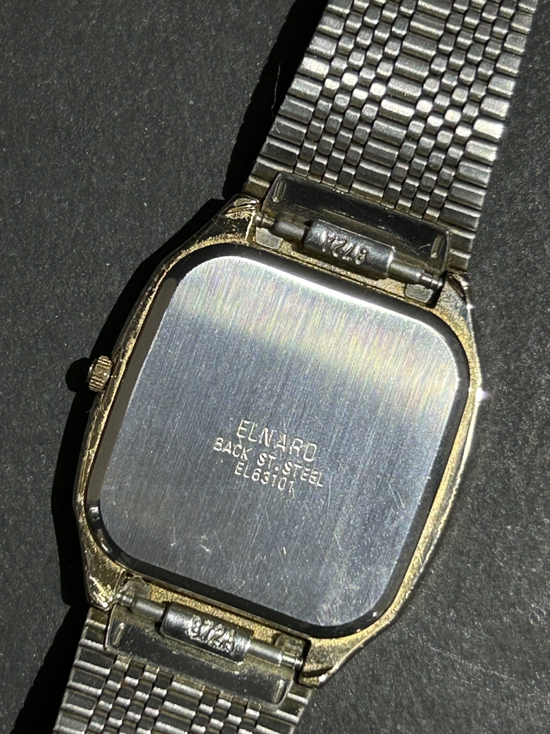 | ELNARD 腕時計の出品です。 動作はしていませんのでジャンク品としての出品です。 経年による傷やくすみなどがありますのでご理解の上、ご検討ください。 状態など写真でご確認の上、ご検討ください。 基本的には used品の出品になります。 本文の記載事項があっても 現物優先とさせていただきます。 予めご了承下さいませ。 動作確認済みの物でも、時間の経過後の動作の保証はできません。 その他不明な点がございましたら、当方がわかる範囲にてお答えします。 | |||