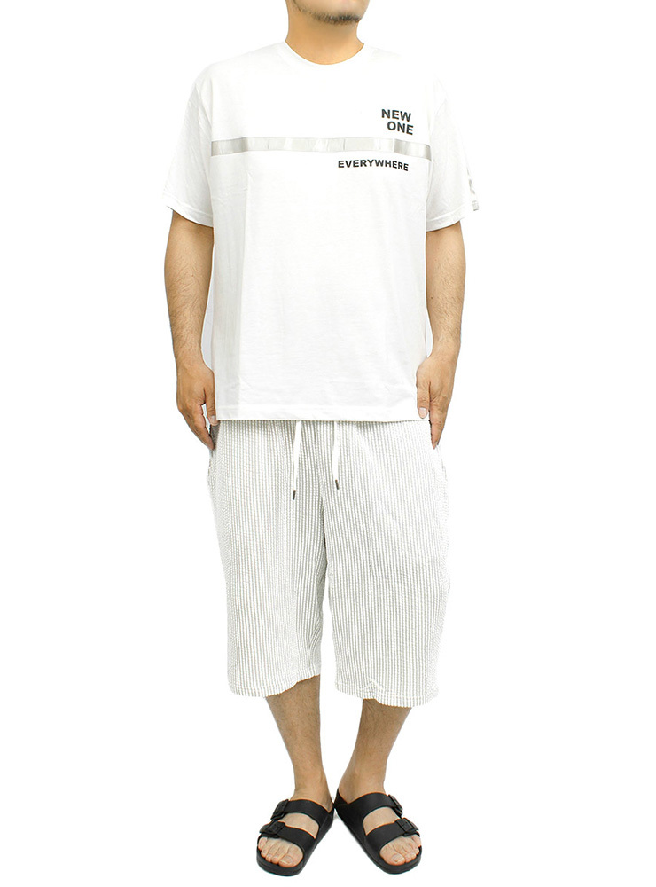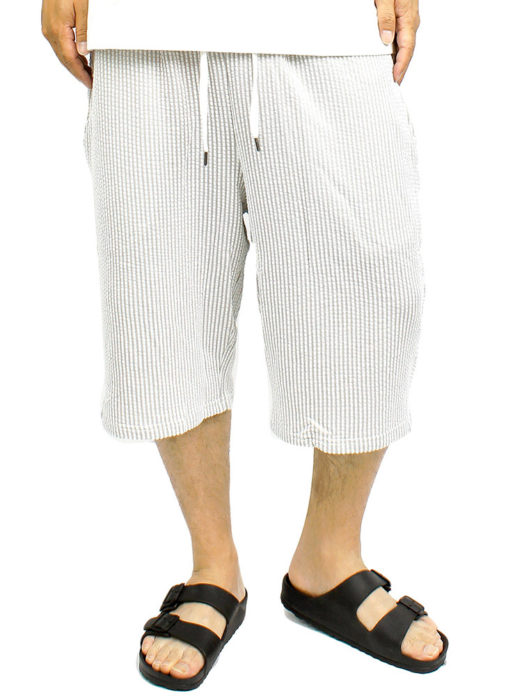 商品名 | 【新品】 4L ホワイト×グレー ショートパンツ メンズ 大きいサイズ シアサッカー ストレッチ ハーフパンツ |
