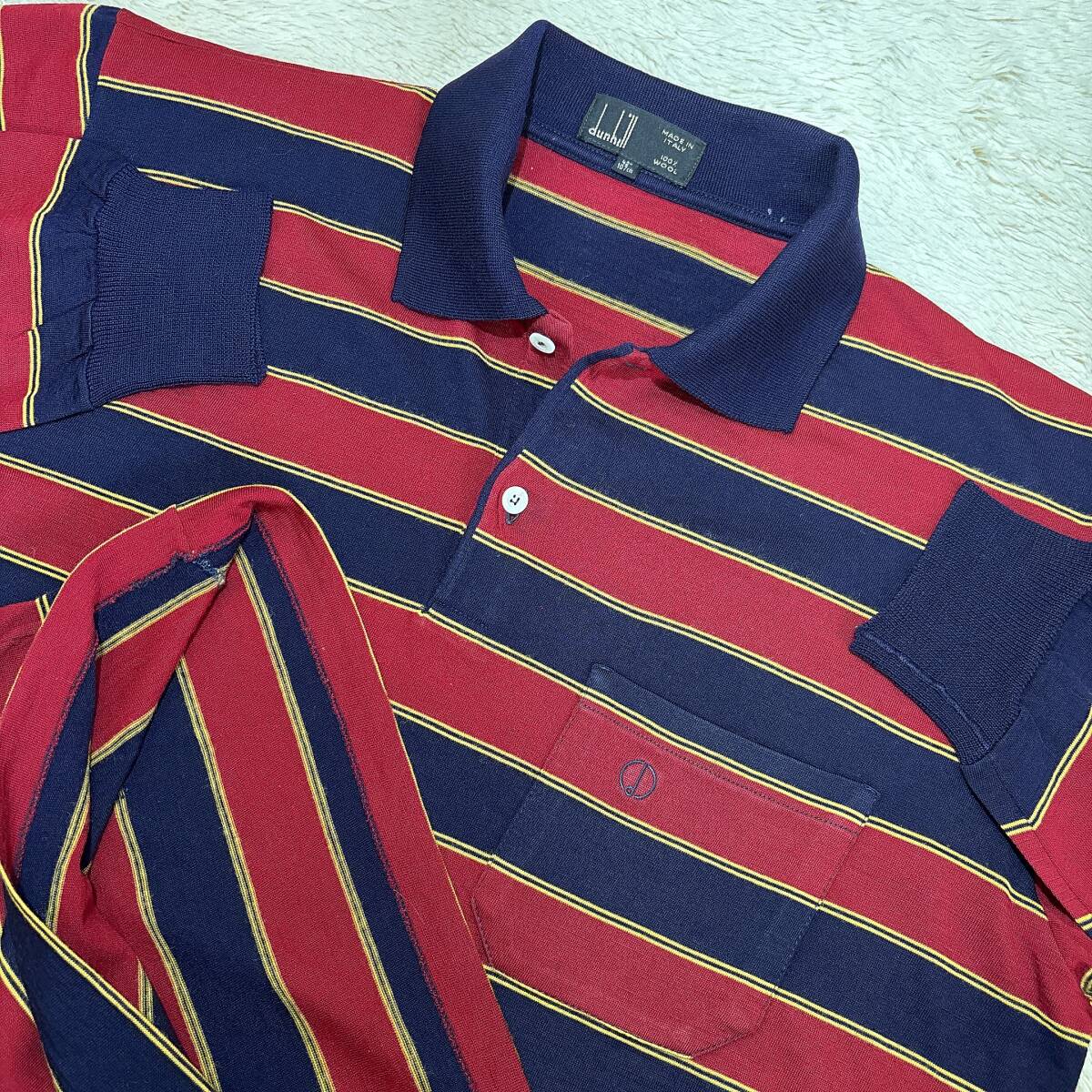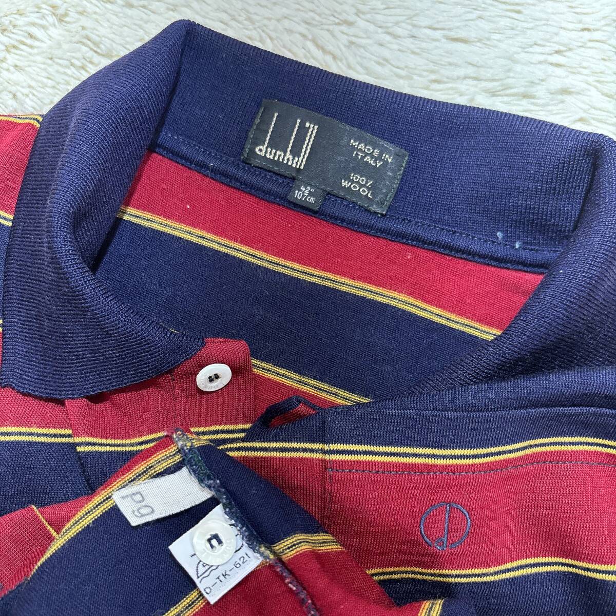 X661■dunhill/ダンヒル★伊製★ボーダー/ウール★ポロセーター■42/107 | ||||||||||||||||||||