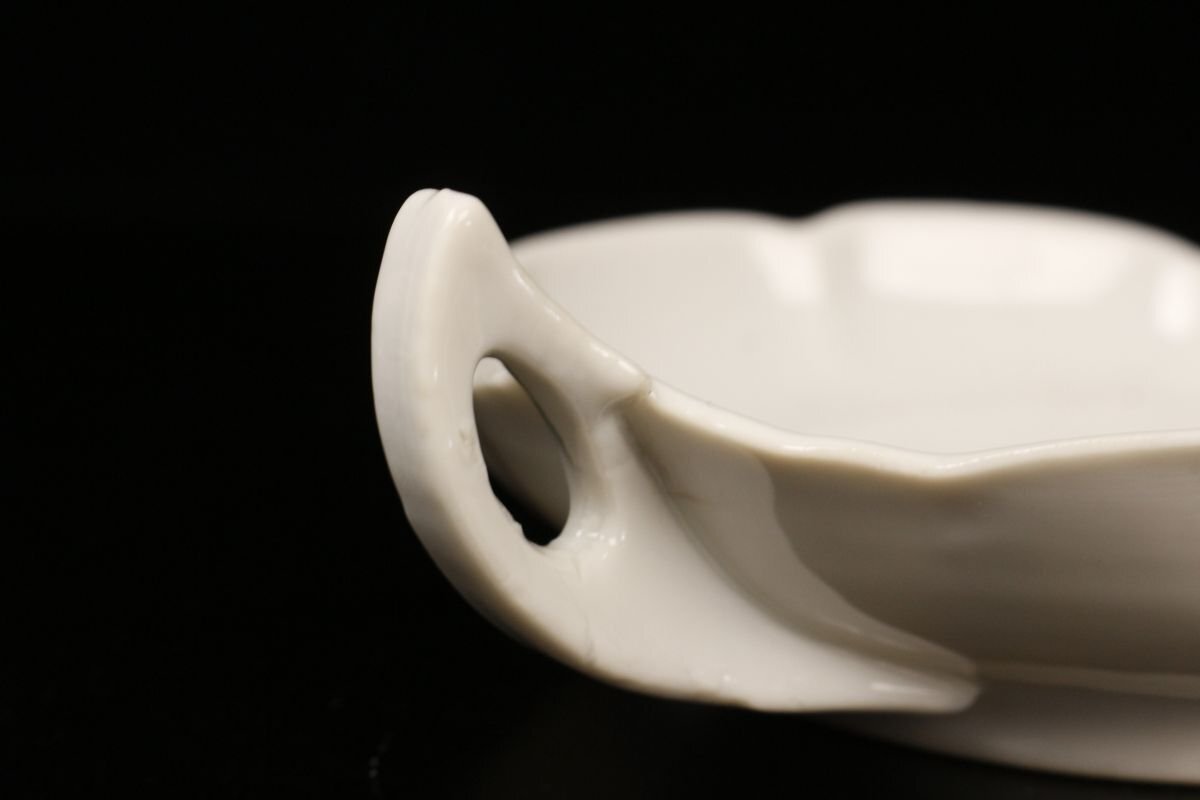 * * * 商品詳細 * * * ここでしか出逢うことのできない唯一の美をご紹介させて頂きます。 白高麗《葉型手付鉢》― 静謐な白の美 静けさと気品を湛える、白高麗の葉型手付鉢。当時の美意識を色濃く映すこの器は、洗練された造形と端正な白磁が織りなす、清らかな佇まいが魅力です。 花弁を思わせる柔らかな輪郭と、両端に施された優美な持ち手は、実用性と装飾性を兼ね備え、手に取る者に上品な印象を与えます。釉薬は乳白色にふわりと溶け込み、景色として味わいを深めています。 食器としてはもちろん、菓子器や花器の見立てにも映える器であり、使うたびに心が整うような静謐さを宿しています。 和洋問わず、空間を清らかに引き立てる一品。工芸の美と用の美が交差する、白磁ならではの境地をご堪能ください。 ■商品内容/ 鉢、箱 ■サイズ/横23㎝×高5.5㎝×奥行17.5㎝ 箱:横19.5㎝×高7㎝×奥行21.5㎝ ■状態/ スレ、小傷、汚れ、窯被、箱にスレ、傷、汚れ、蓋に曲がりがございます。 ※写真にてご確認、ご了承の上ご入札下さい。