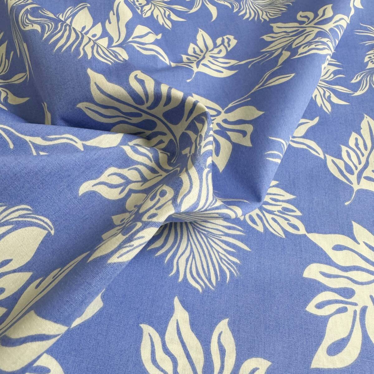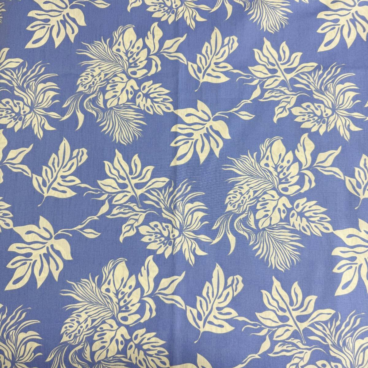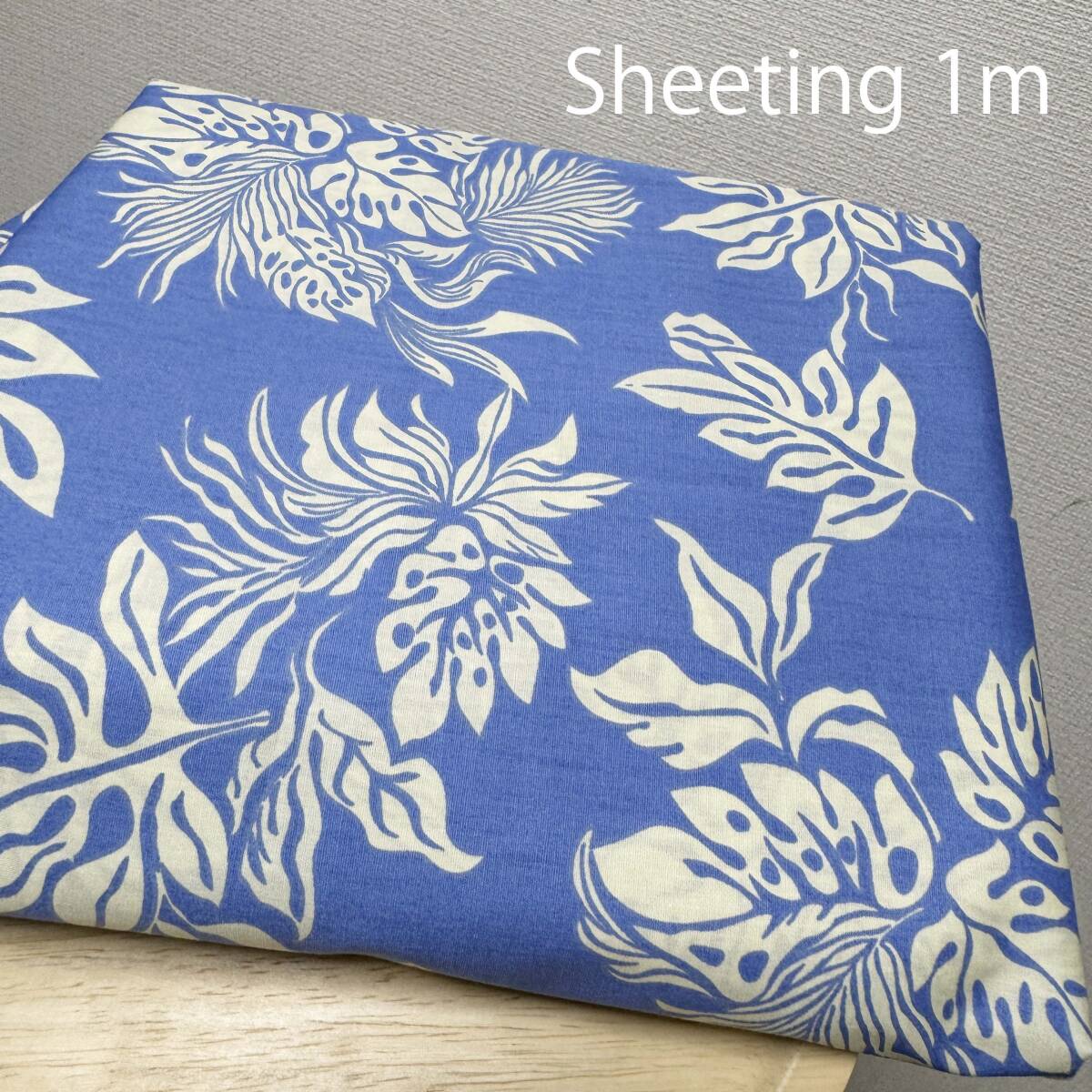 【残り僅か】ハワイアンなリーフ柄★ブルーベース★シーチング生地1mモンステラ