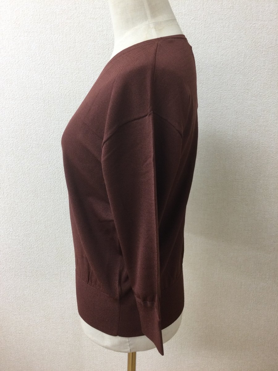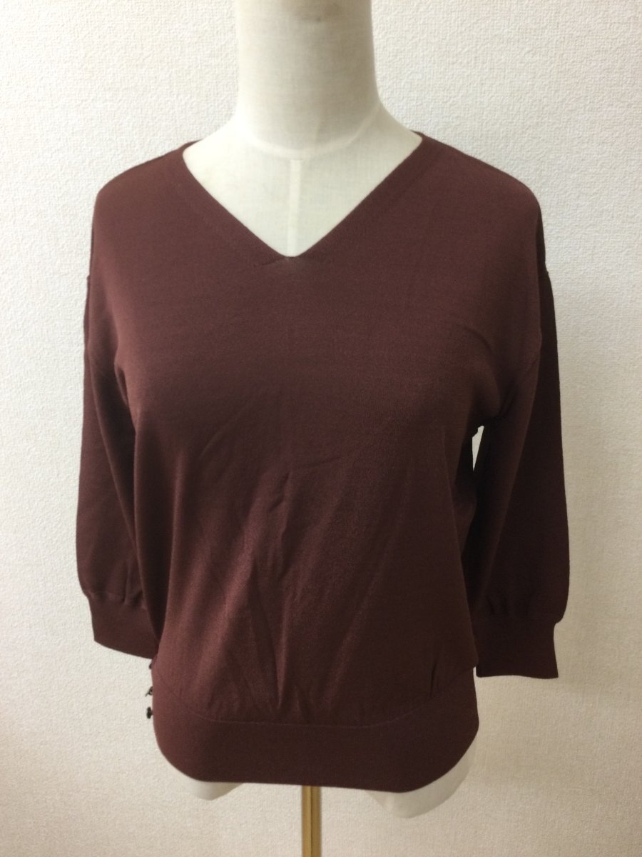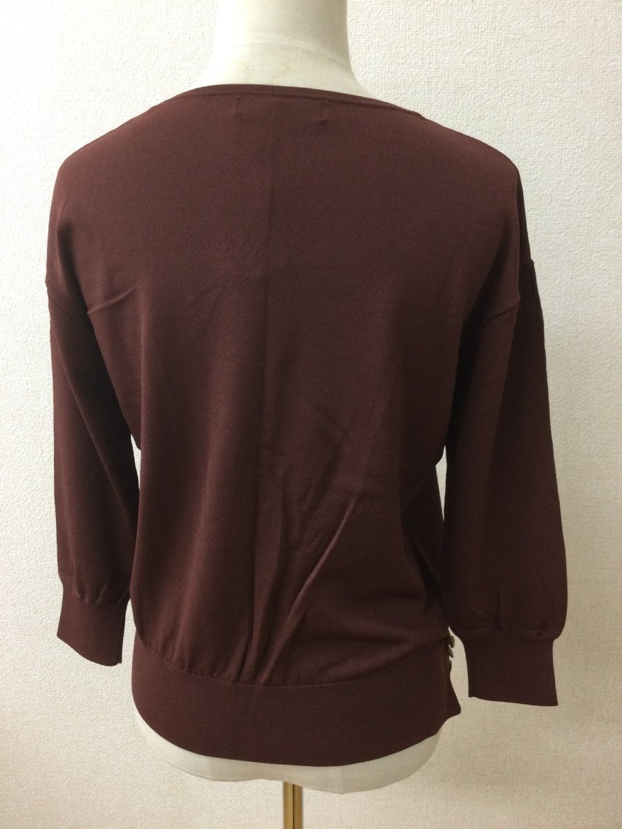 | 管理番号:10^137365 インディヴィ 赤茶色ニット すそは飾りボタンとスリット 表示サイズ:38 実寸(参考)