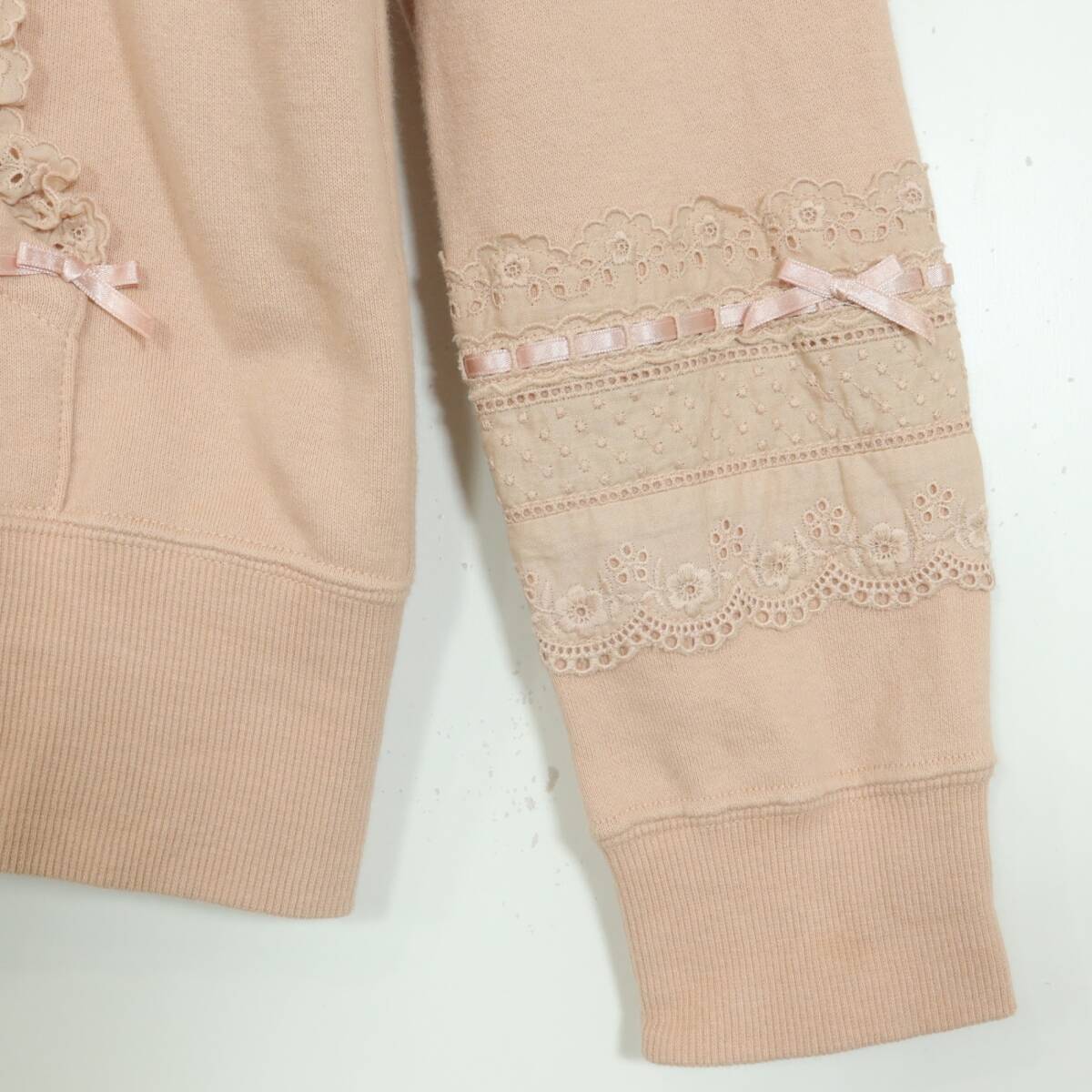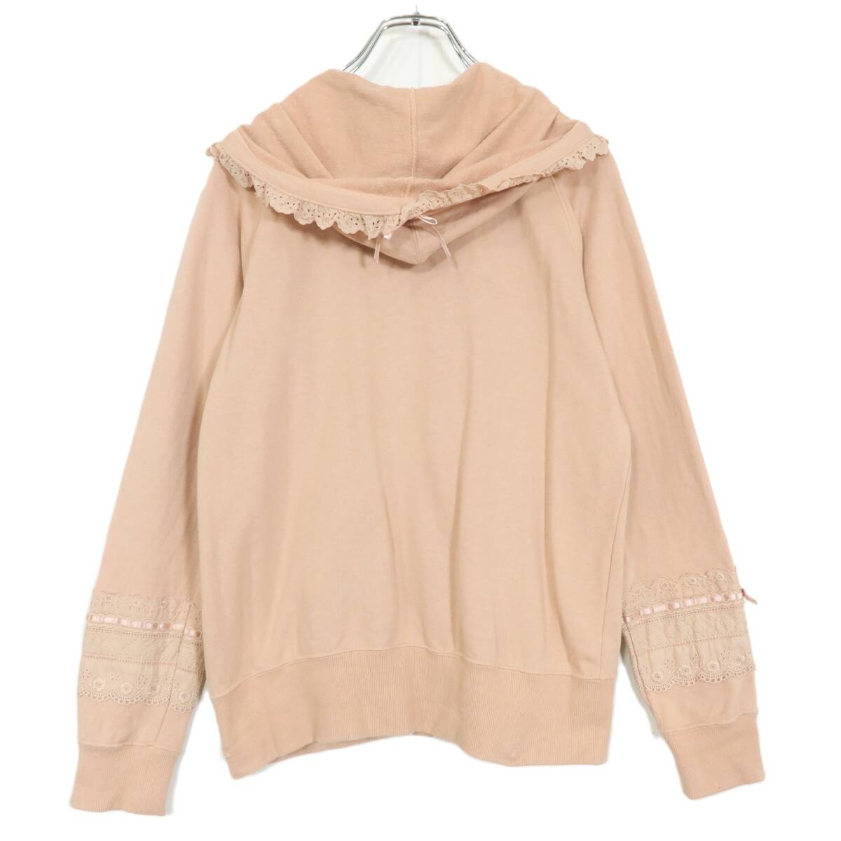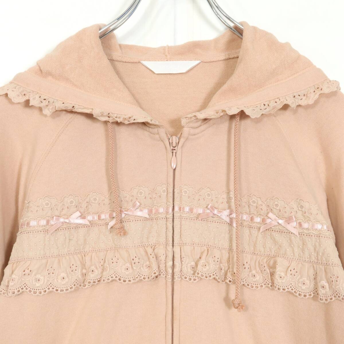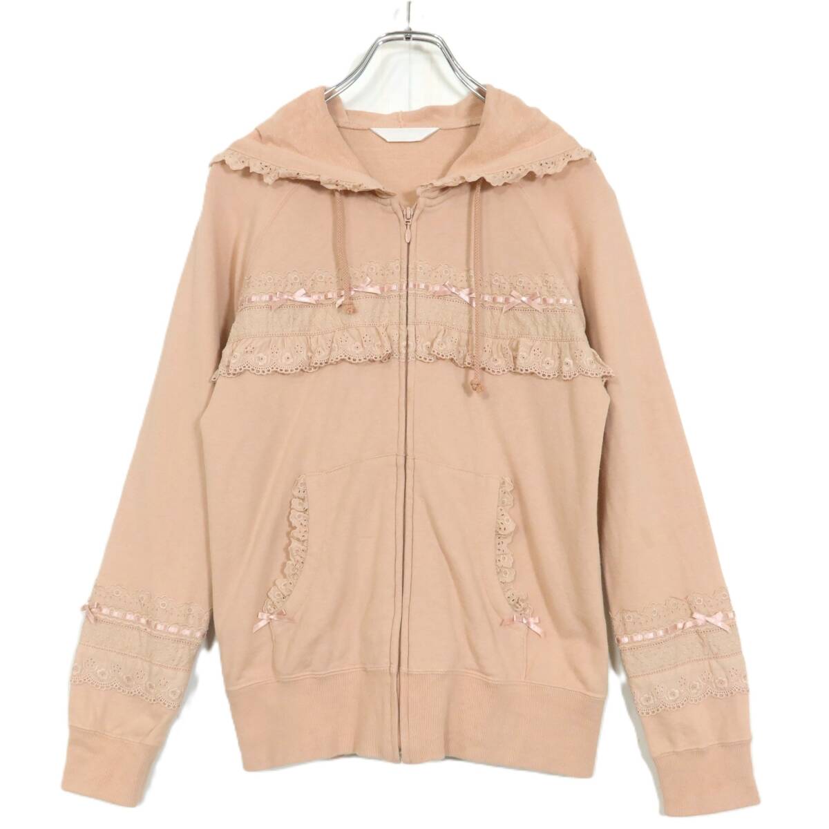 商品説明 | 【実寸約】裄丈80バスト92着丈57(cm) 【サイズ表記】 M 【素材】綿100% 【状態】普通の使用感のあるお品物 【デザイン】ピンク系 フード付きジップアップブルゾンです。 厚手/スウェット素材/無地/ポケットあり はしごレース&サテンリボン/カットワーク刺付き |