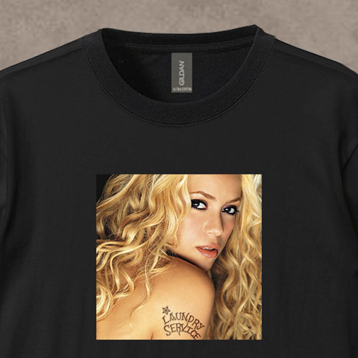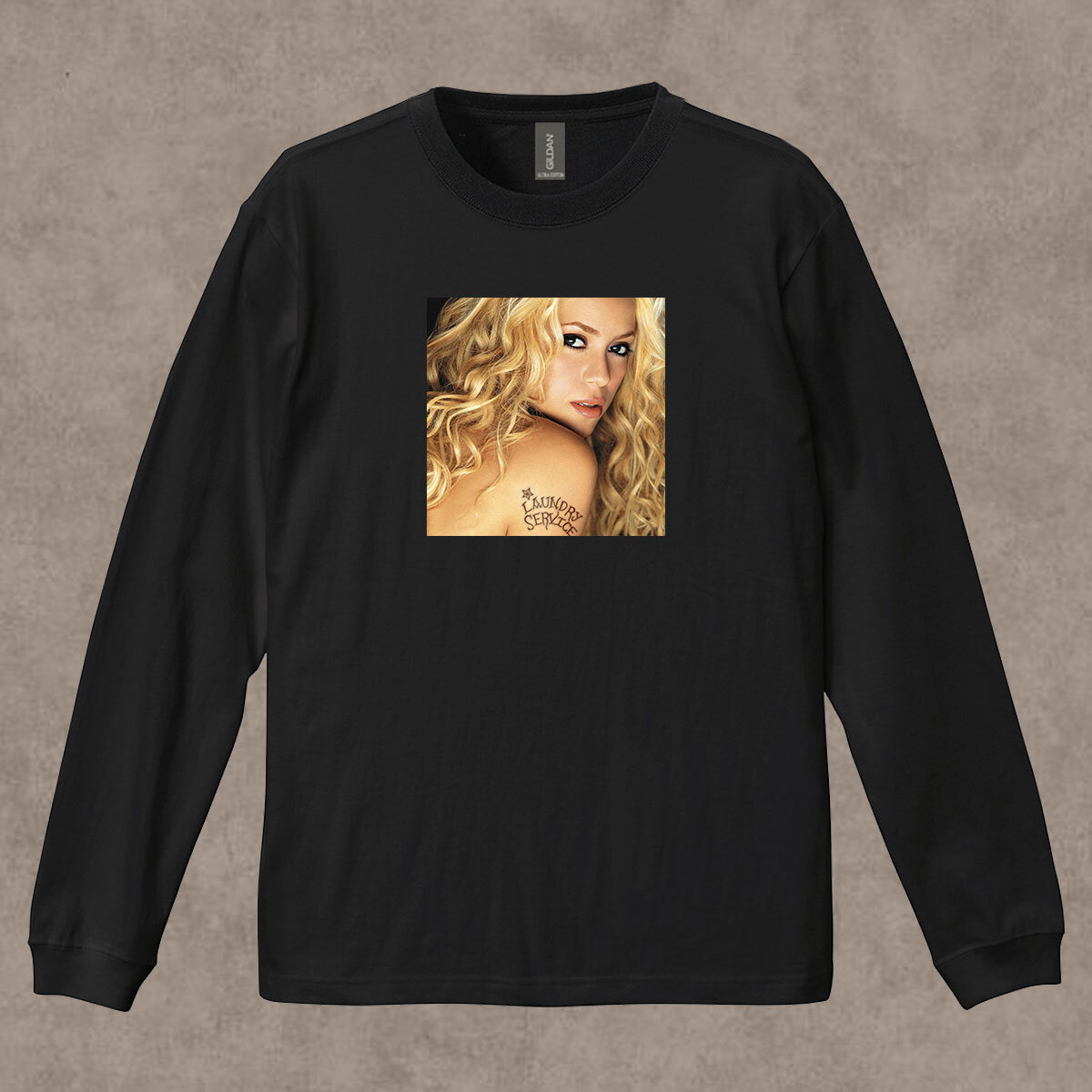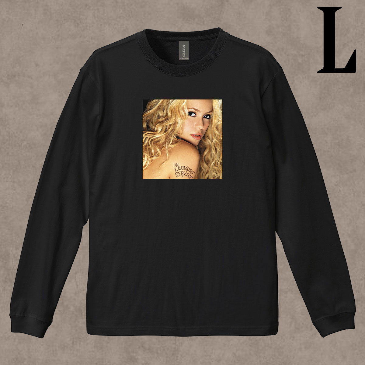 シャキーラ SHAKIRA 柄 フォトプリント リブ付き 長袖 Tシャツ ロンT ミュージックTシャツ 6.0oz コットン100% ユニセックス L