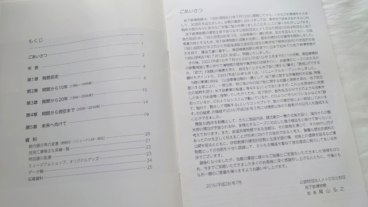 ★地下鉄博物館★地下鉄博物館30年の歩み★冊子 平成28年