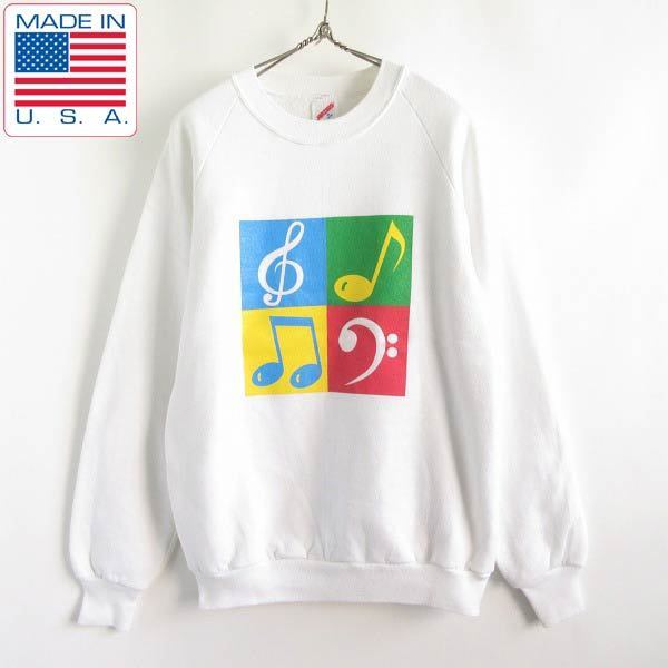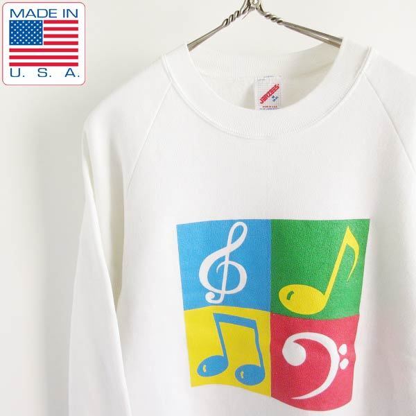 商品名 | 80s USA製 JERZEES 音符柄 スウェット 白 M トレーナー コットンポリ アメリカ製 ビンテージ D143 |