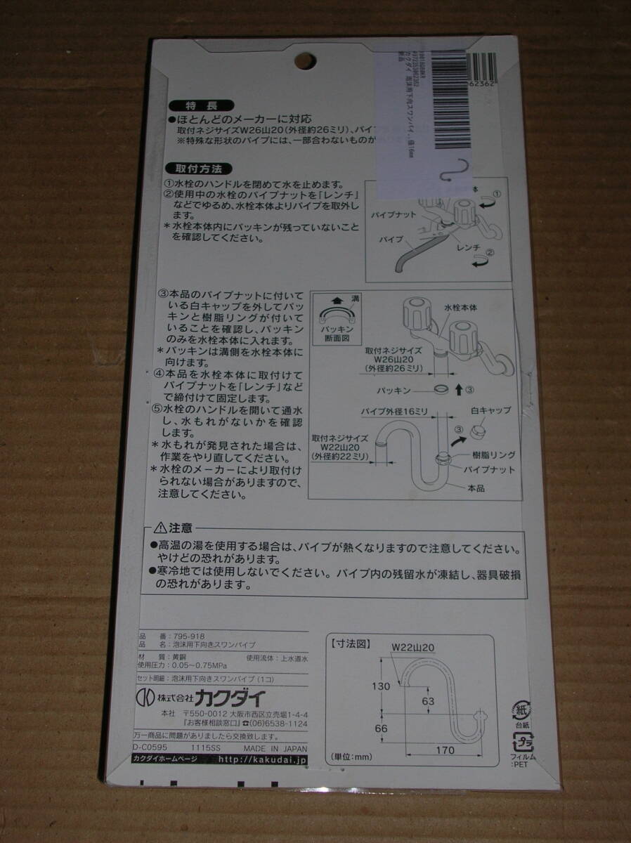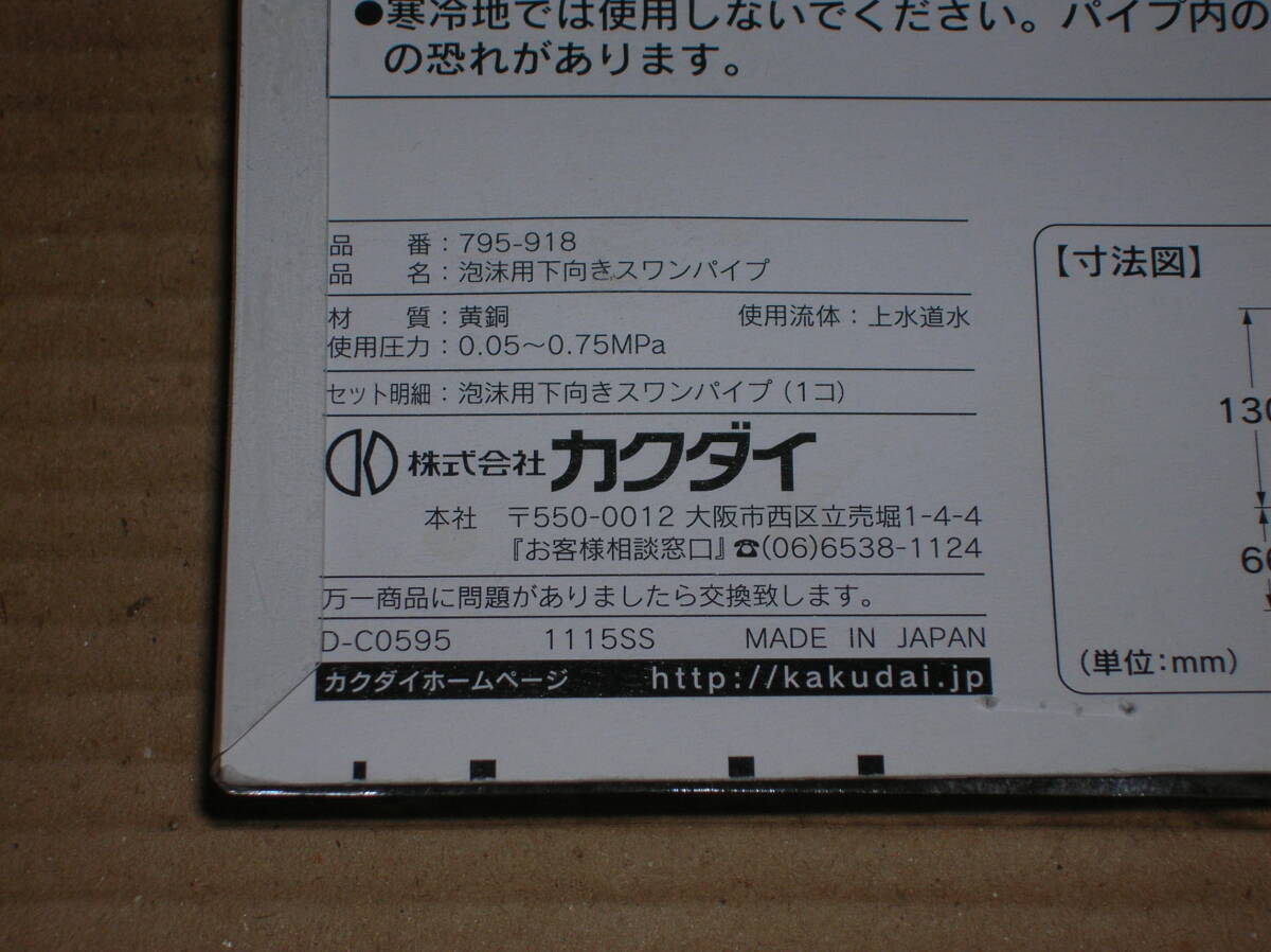 カクダイ(KAKUDAI) 泡沫用下向スワンパイプ 795-918