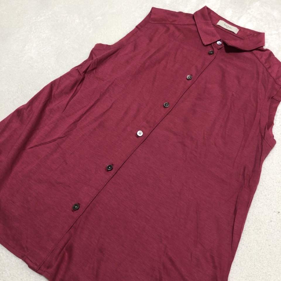 1円~ 60 A-3-23 Paul Smith ポールスミス ノースリーブ ブラウス サイズM レーヨン コットン レッド系