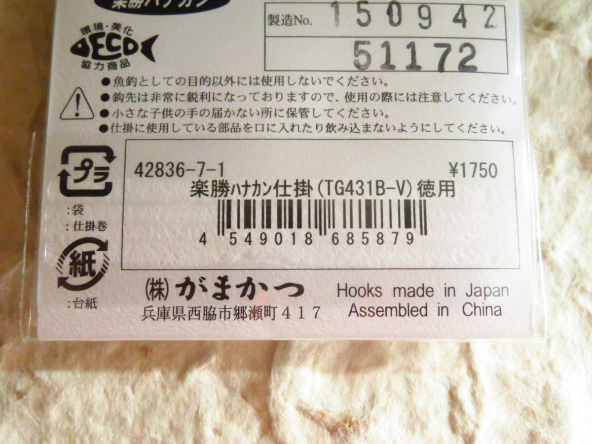 がまかつ 楽勝ハナカン仕掛 7号×2個セット 徳用 TG-431B フック式