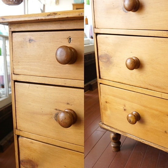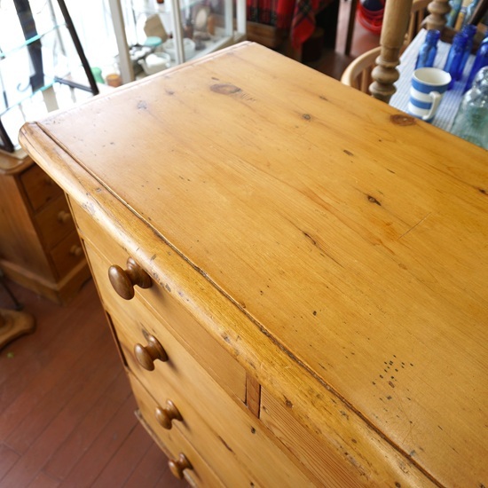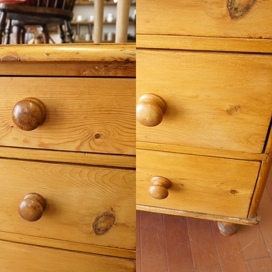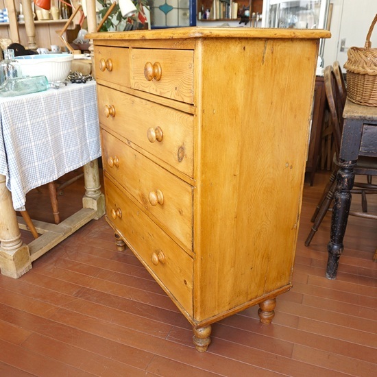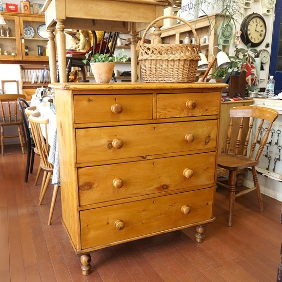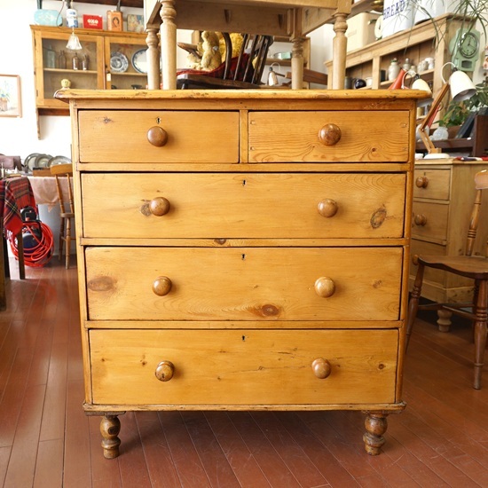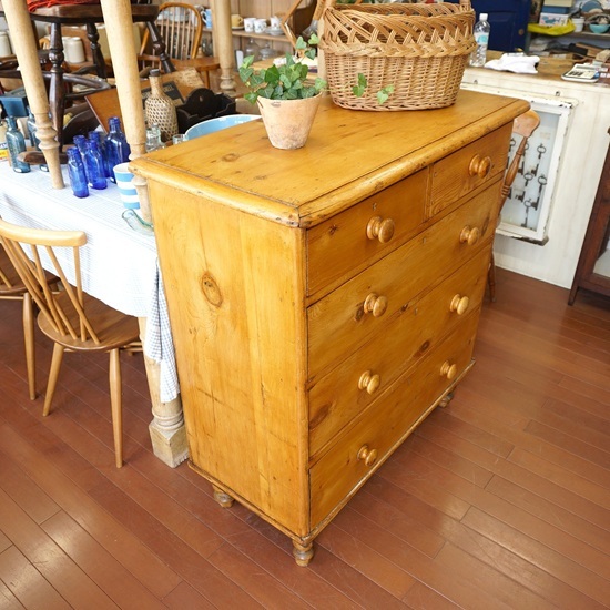 イギリスで買い付けましたオールドパインの5杯チェストです。
