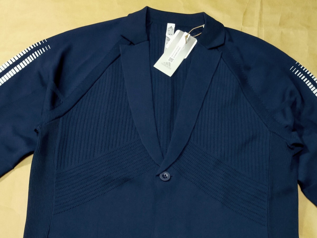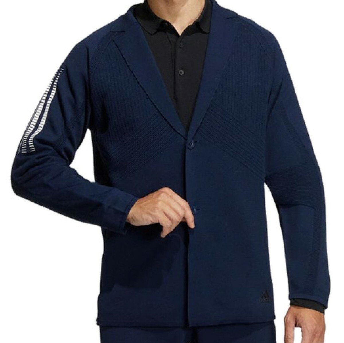 スイングを描くのを邪魔しないadidas PRIMEKNITを使用した、ショットの動きに合わせて伸縮する生地で作られたテーラードスタイルのジャケット