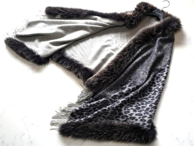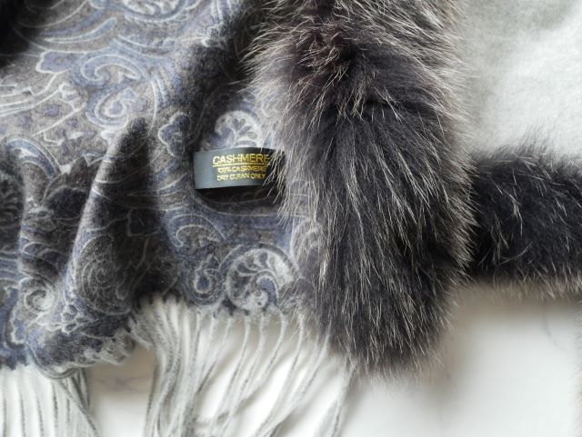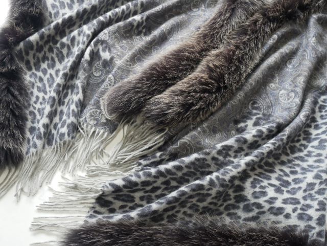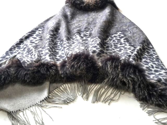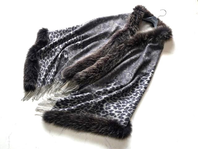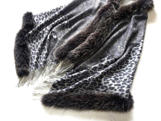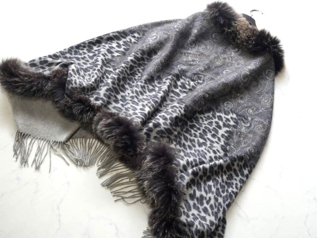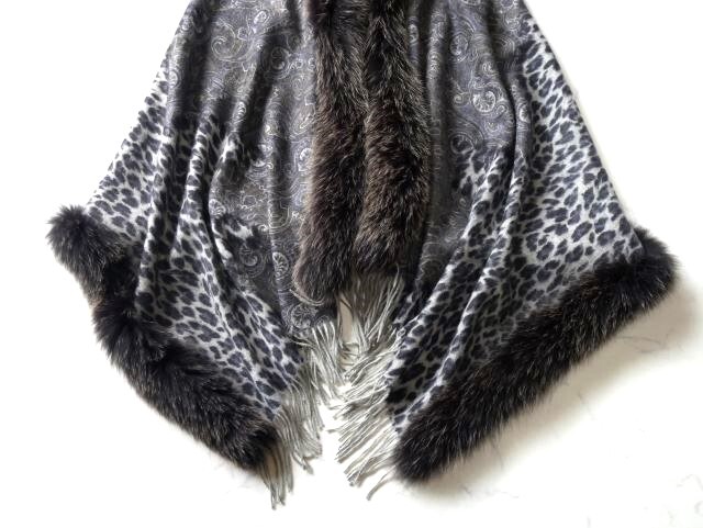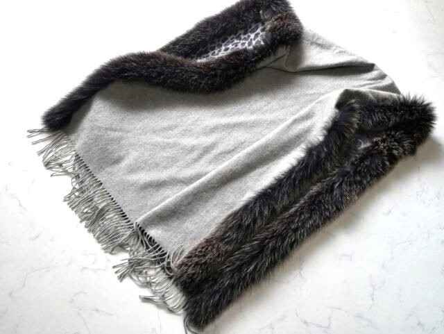 上質カシミヤ100%×フォックス 大判ショール♪みよし毛皮♪カナダ製