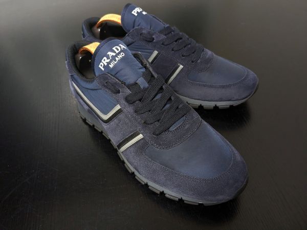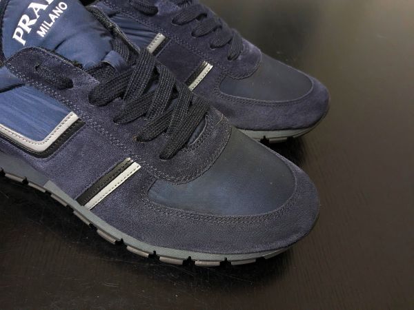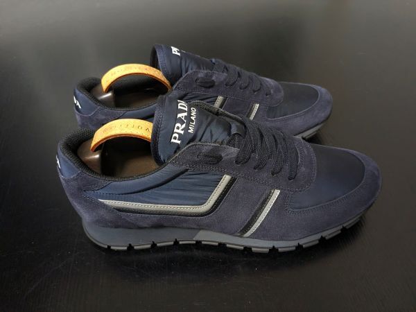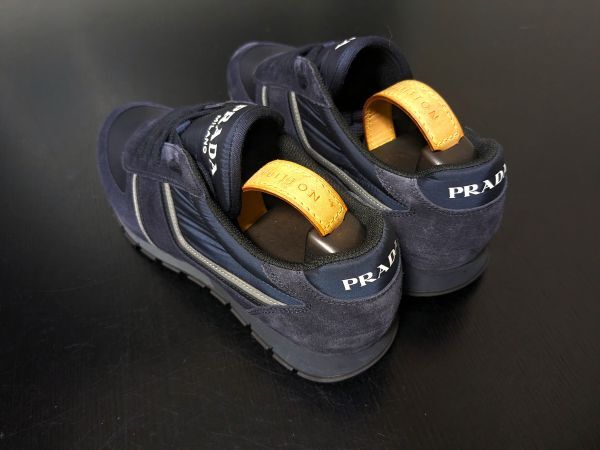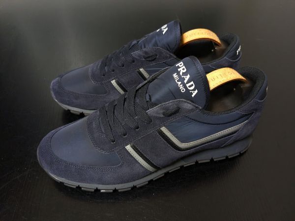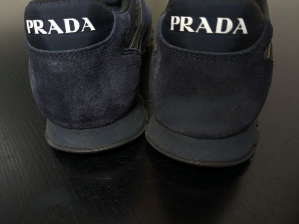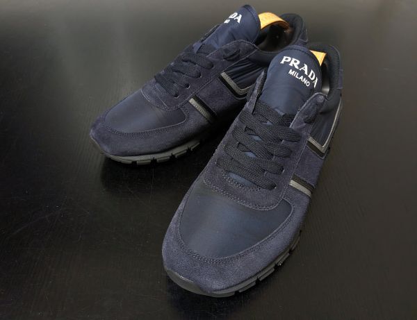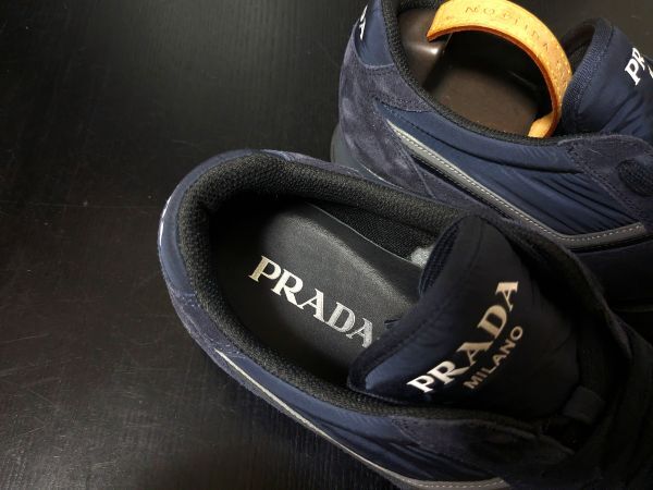 使用少 プラダ 8 PRADA 濃紺 コンビレザースニーカー 819