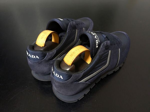 使用少 プラダ 8 PRADA 濃紺 コンビレザースニーカー
